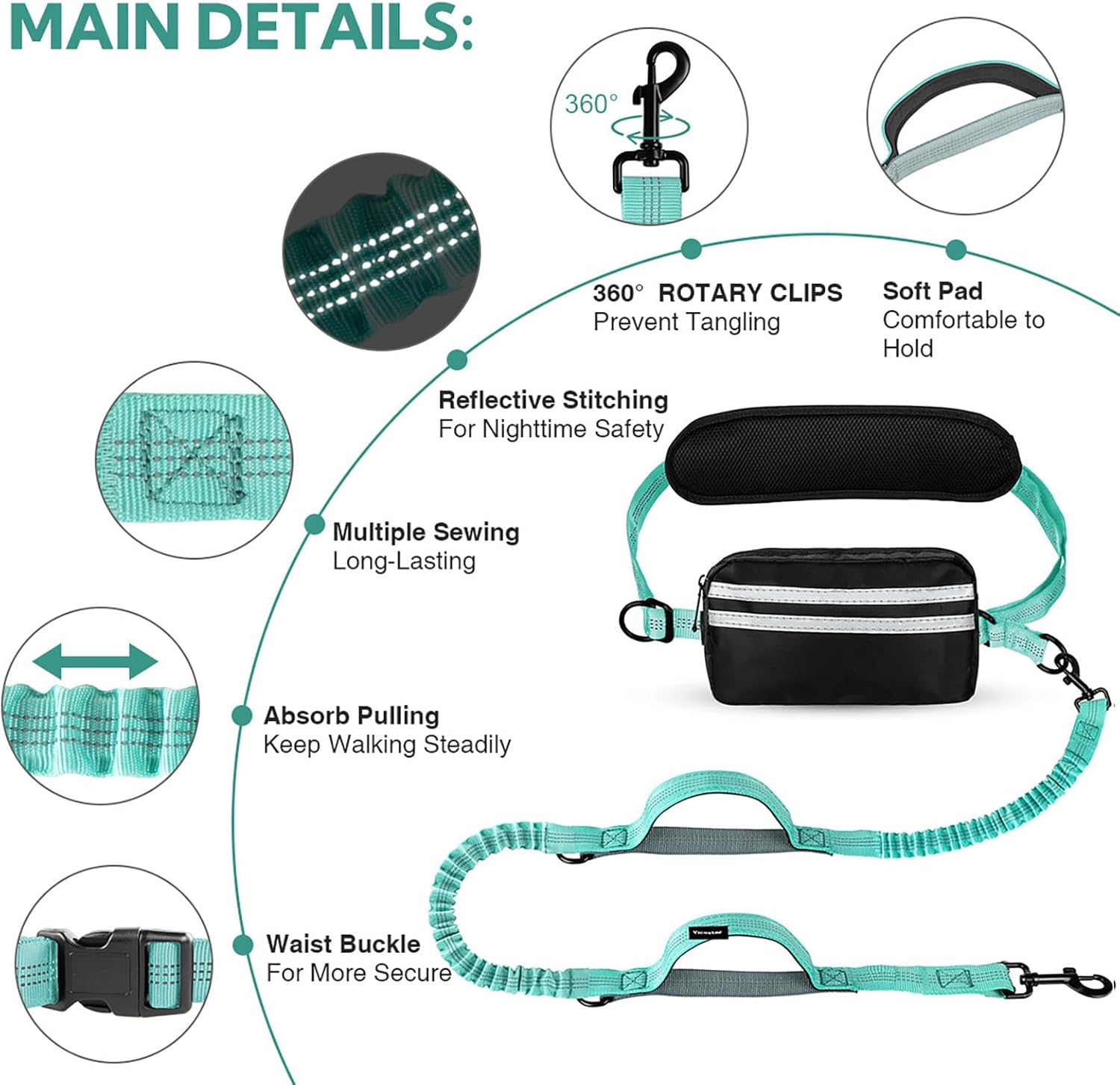 - Comfortable Waist Belt: Dog waist leash belt with a foam pad is for your strong puppy who loves to sprint! Adjustable waist belt range of 27 to 55 inches fits a large range of waist sizes. This waist dog leash passes through the support part of the waist, so you won't be dragged down by the dog walking belt which keeps you safe on your walks! The puppy leash has two metal hooks to keep your furry friend connected to you, so you can freely enjoy running & walking with your dogs!