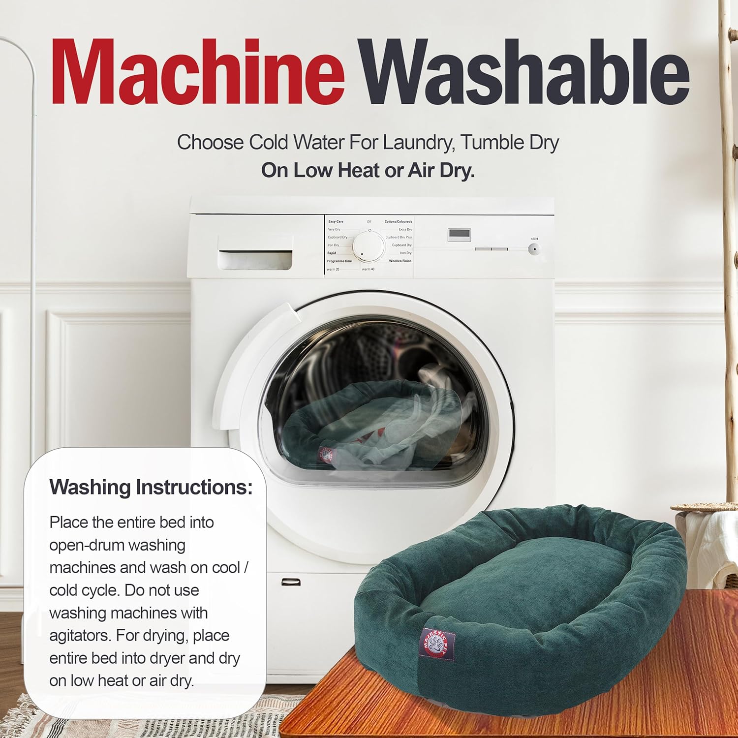 - [Entire Bed Machine Washable for Lasting Freshness] Keep your orthopedic dog bed as clean as the day you bought it by placing the entire bed in an open drum washer. While the bed does not have a removable cover (available for Large & XL only), its durable, washable design ensures easy maintenance and lasting freshness. Simply wash the entire bed to keep it cozy and odor-free.