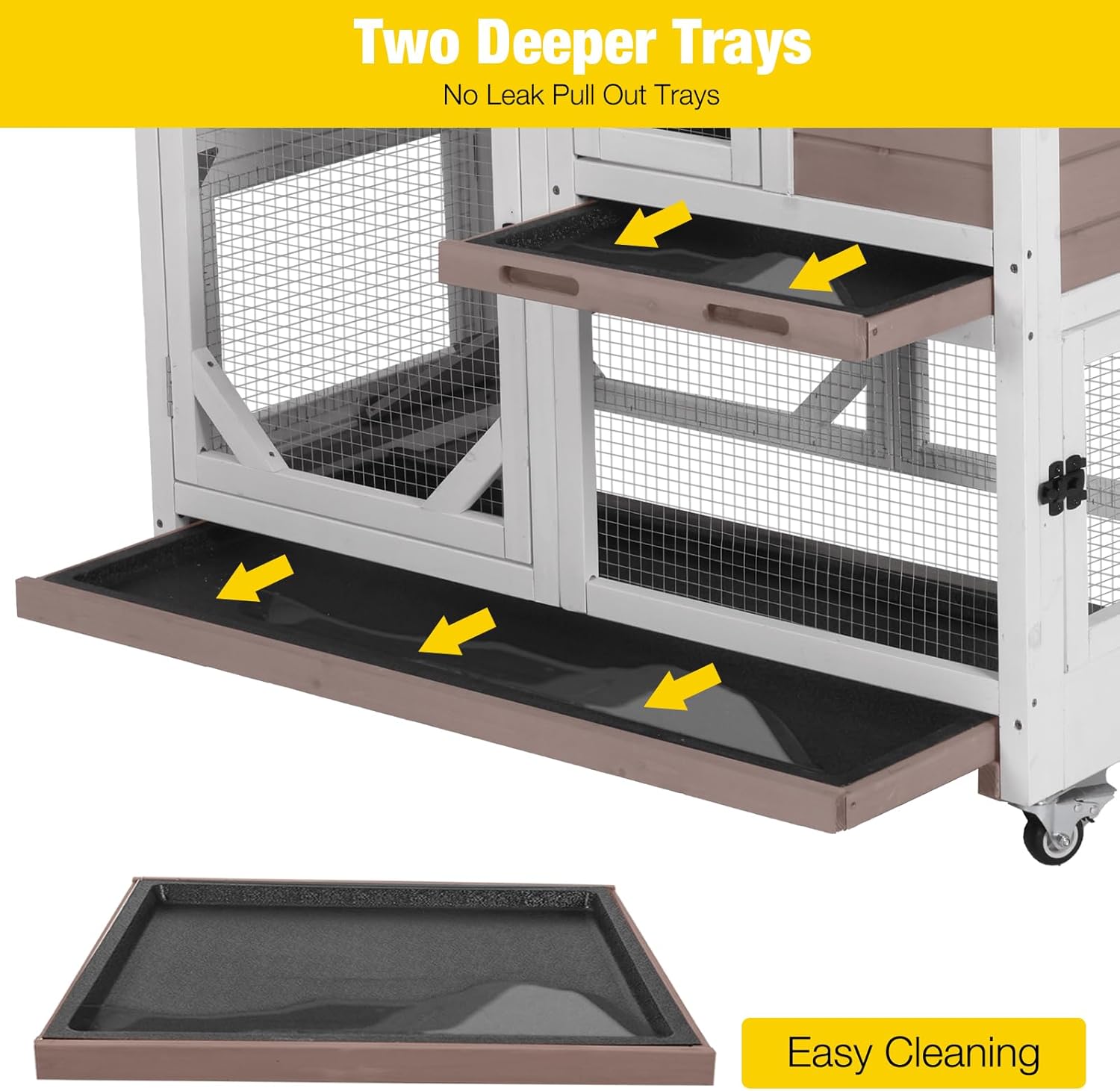 Aivituvin Rabbit Cage Indoor Outdoor Bunny Hutch on Wheels, 2 Story Wood Guinea Pig Cages with 2 Deeper Pull Out Trays