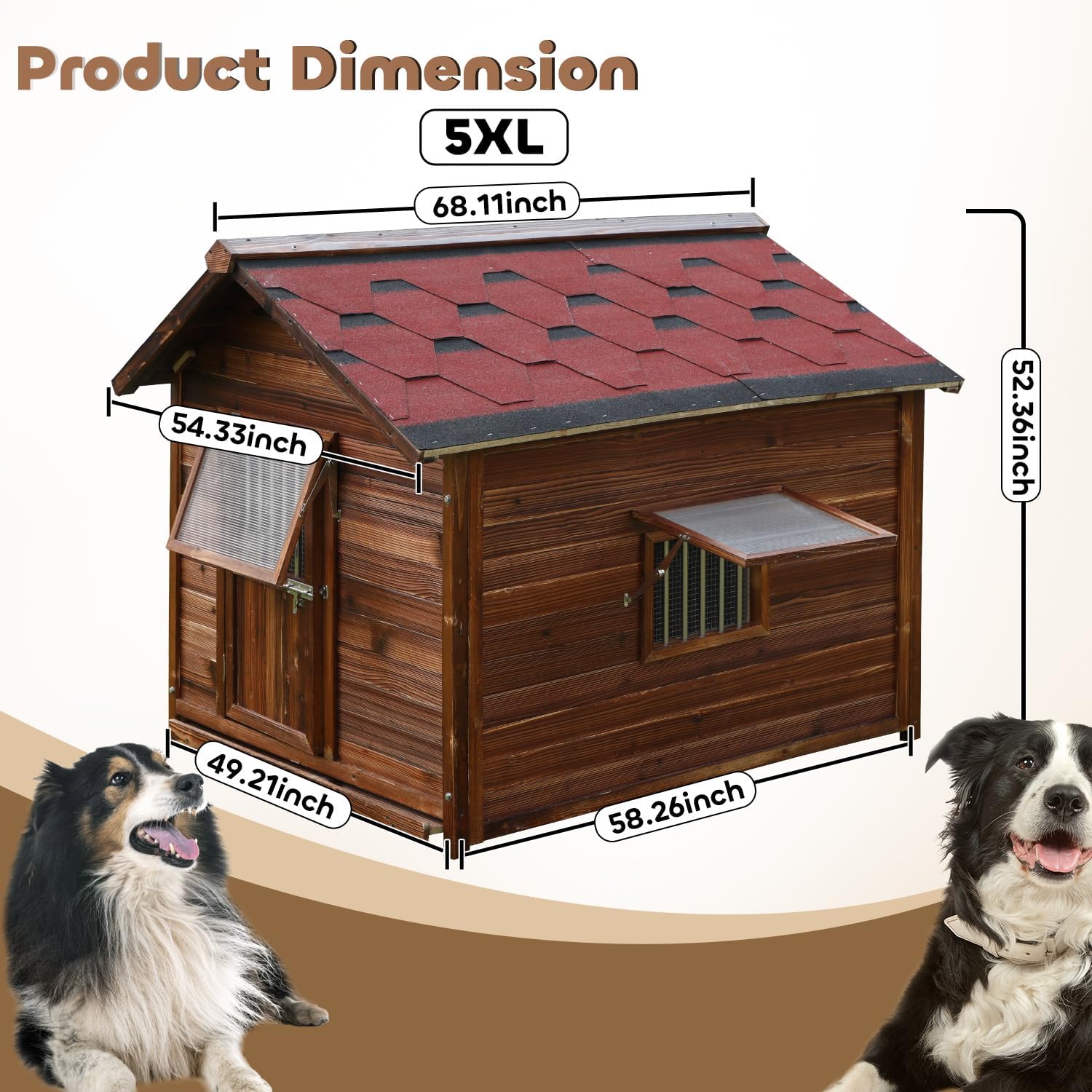 - Functional and Fashionable: The dog kennel is constructed with finnish wood and weather-resistant asphalt tiles, which is durable, rot-resistant, and easy to clean, so it can keep your furry friend protected from any rain or snow in the cold.