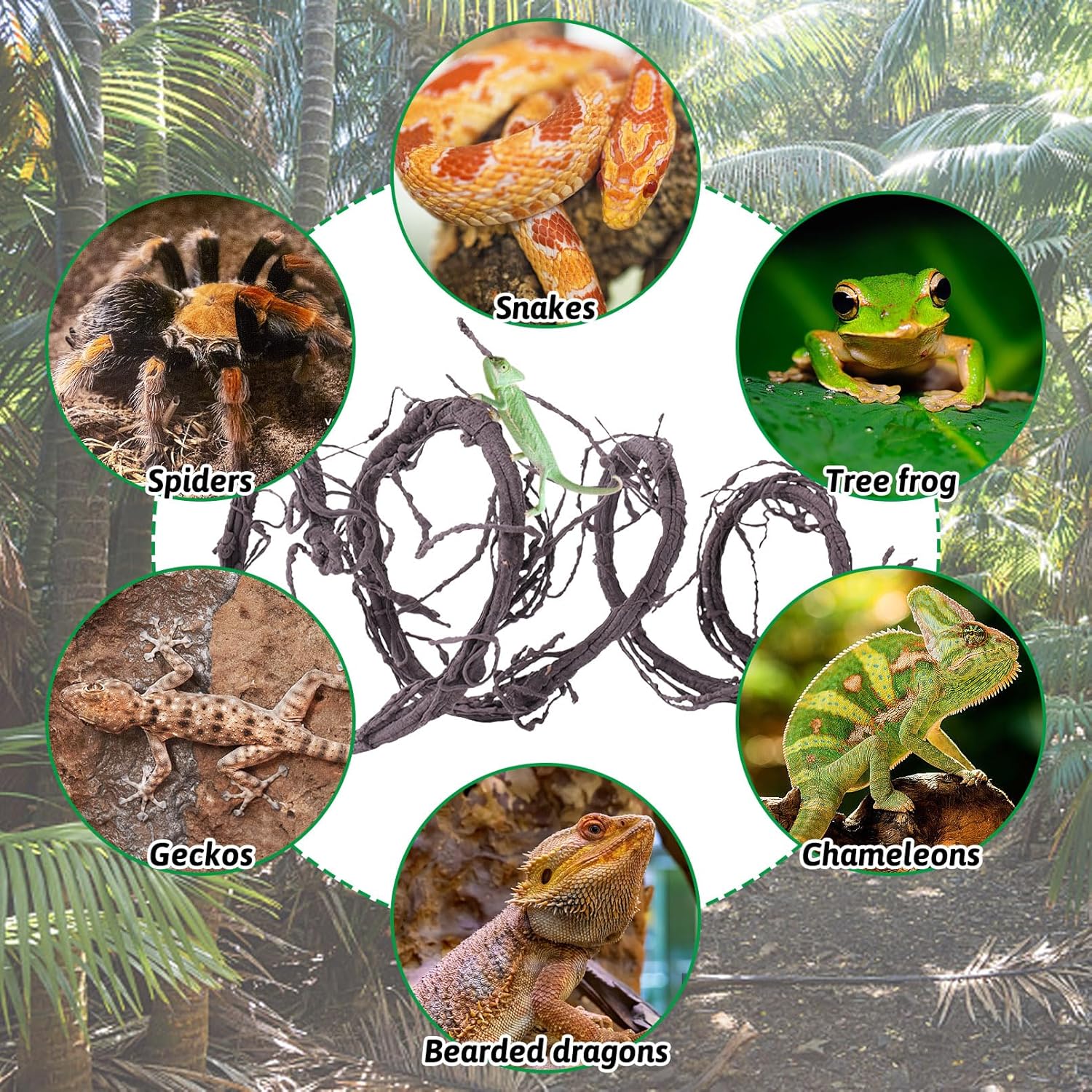 - 2 Packs Include: 1 x large vines for snakes, length 118 inches, diameter 0.4 inches, 1 x Reptile Plant Leaf, length 78 inches. Great for corn snakes, chameleons, frogs, geckos, bearded dragons, ball python, hermit crab, spiders