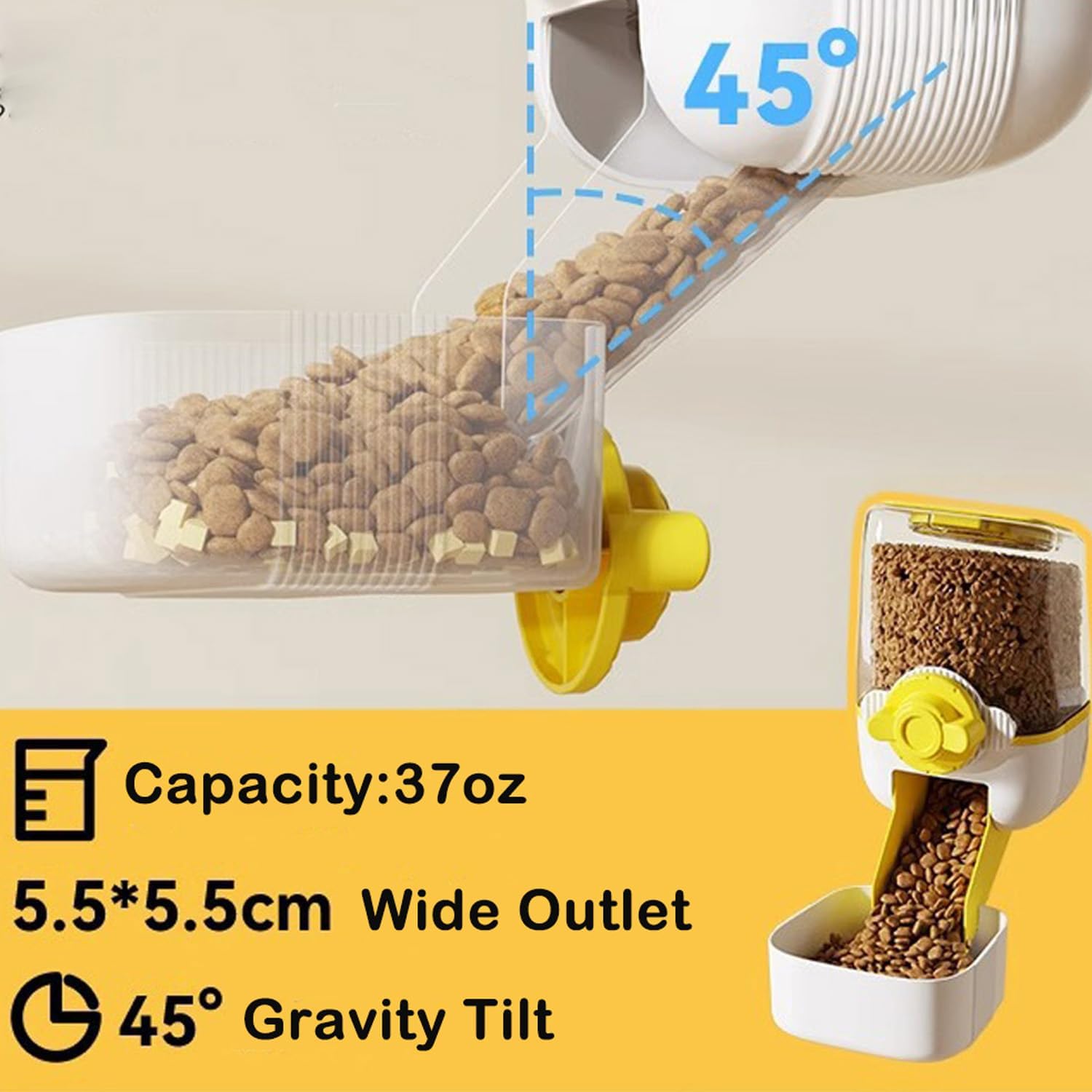 Pet Hanging Automatic Feeders Drinking Bowls,Gravity Rabbit Feeder and Water Set,Cage Cat Food Bowl Feeding Station for Puppy Kitten Chinchilla Hedgehog Guinea Pig Ferret (Yellow-Food)