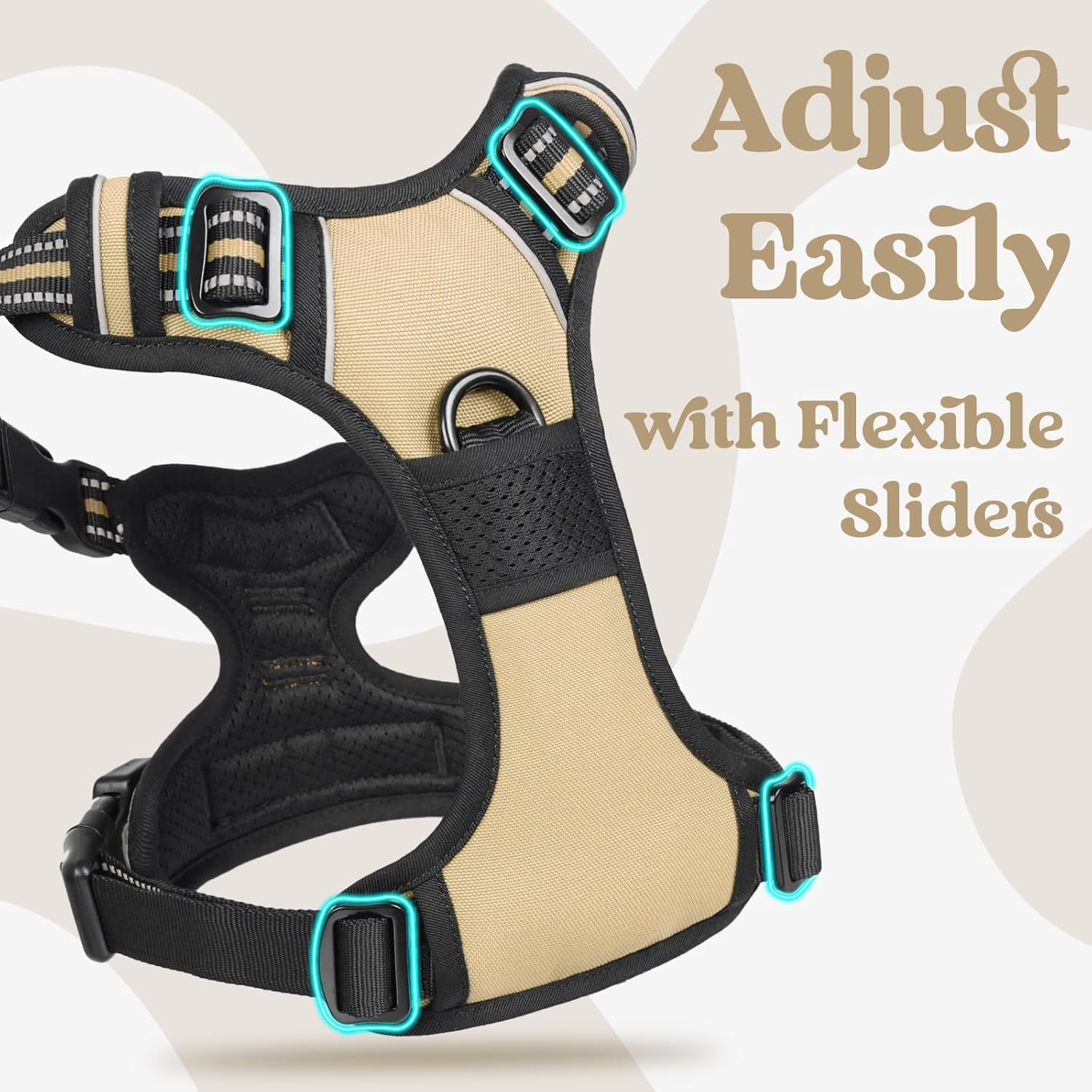 rabbitgoo Dog Harness Medium Sized, No Pull Pet Harness with 3 Buckles, Adjustable Soft Padded Vest with Control Handle, Walking Reflective Pet Vest for Medium Dogs, Beige, M