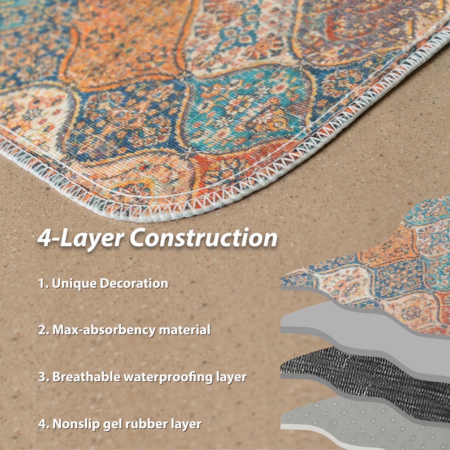 nunubaby Washable Pee Pads for Dogs, Stylish, Non-Slip and Leak-Proof Pee Pads. Reusable Potty Pads for Dogs for Crates and Floors.(Cream/Multi, 54" x54" )