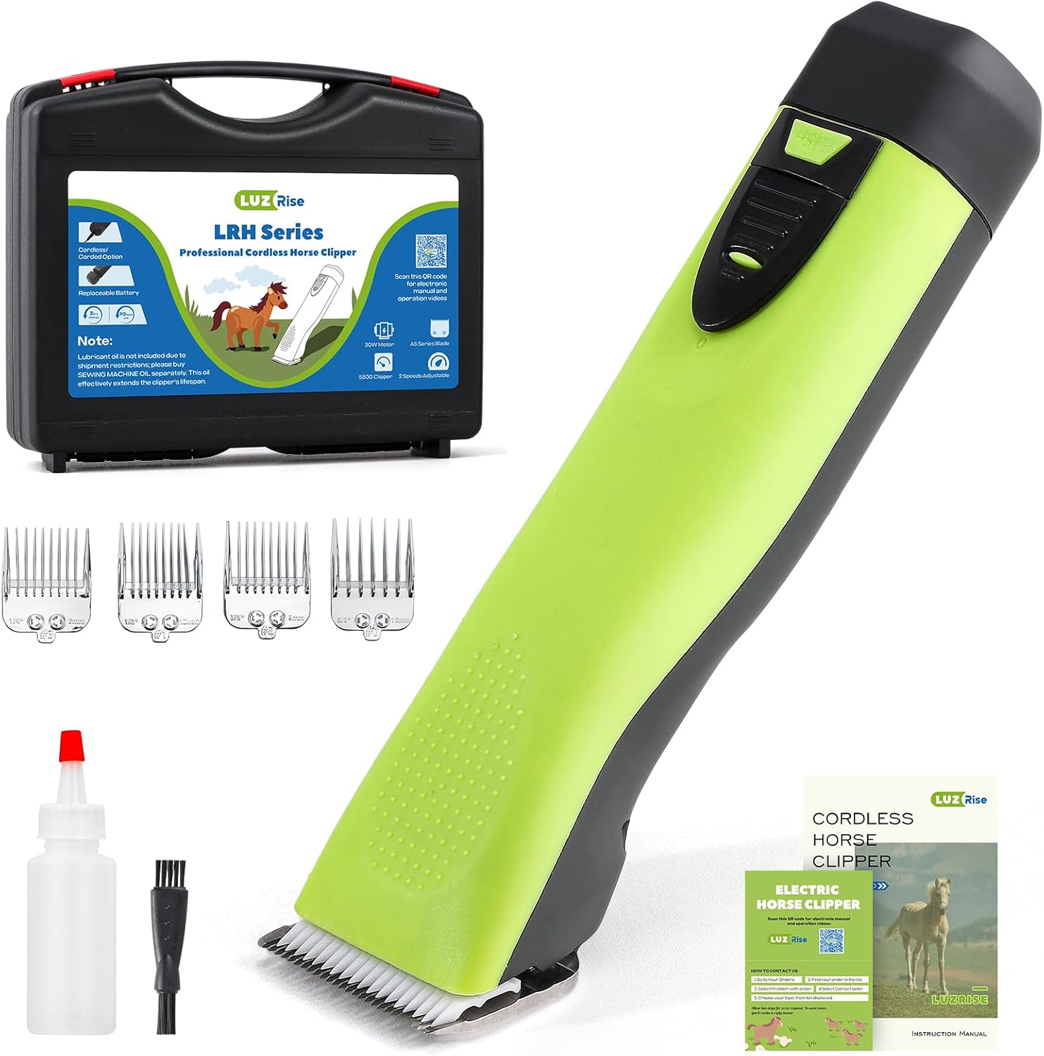 - [PACKING LIST]: 1 x Electric horse clipper; 4 x Magnetic guide combs; 1 x Charger; 1 x Cleaning brush; 1 x Oil bottle (WITHOUT oil); 1 x Replacement blade drive part; 1 x Durable carriage case; 1 x Operating manual. PLEASE NOTE: Lubricant oil is not included due to shipment restrictions; please buy SEWING MACHINE OIL separately. This oil effectively extends the clipperās lifespan.