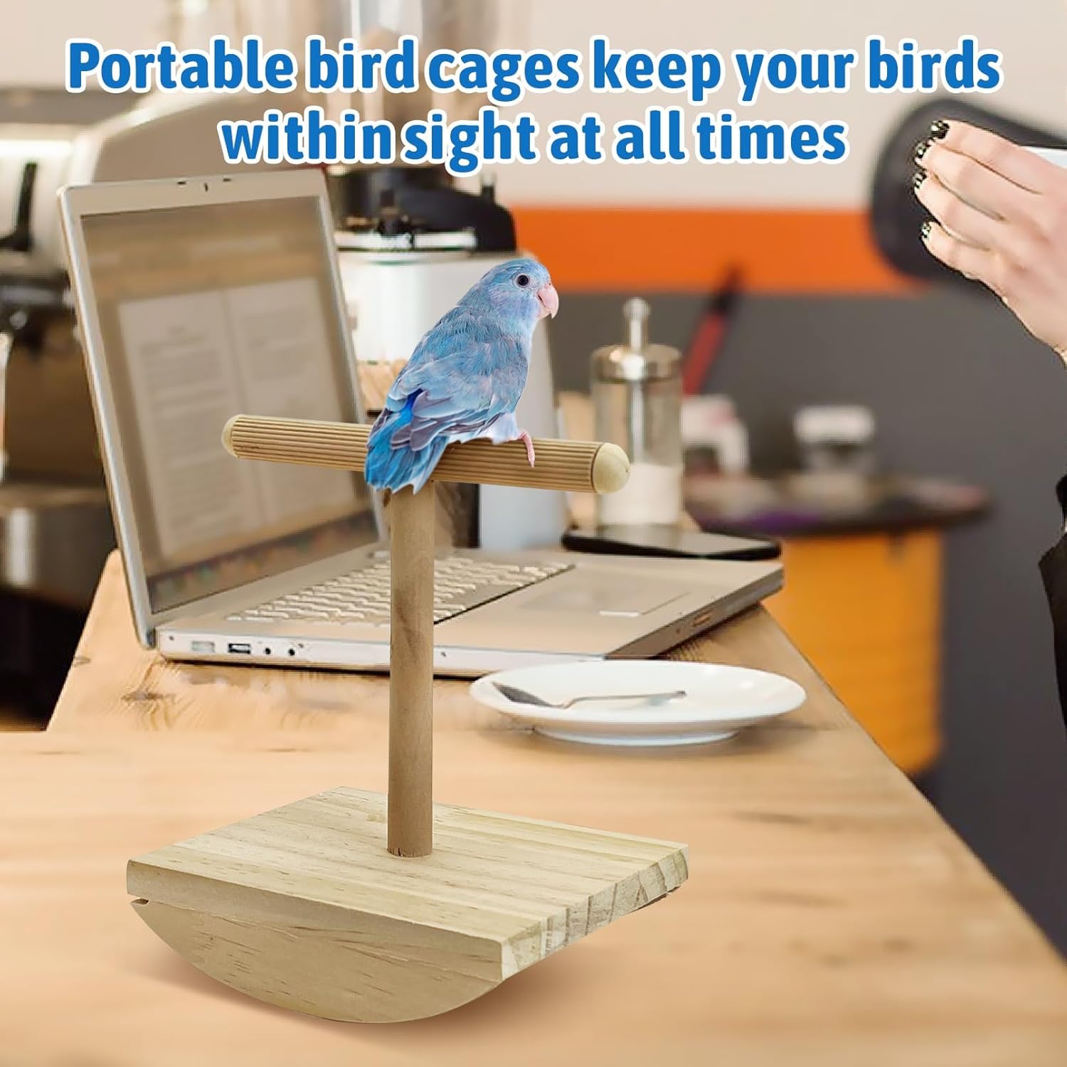 kathson Bird Training Stand Parakeet Playground Bird Perch Stand Portable Tabletop Bird Perch Parrot Stand perches T Shaped Bird Play Stand for Parakeet Conure Lovebird Cockatiel