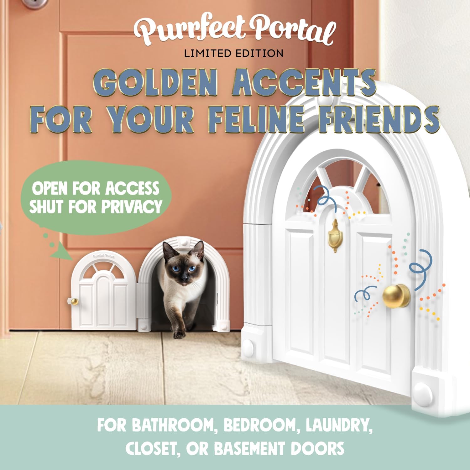 - (PATENTED) PRIVACY FOR YOUR KITTY - Meow Manor pet door for cats is a magic portal to your cat's safe haven. With our indoor cat door, your baby can finally have a personal space for their litter box and food while the human door is closed. The best part? It keeps the odor away in the cutest way possible! And the dogs, too.