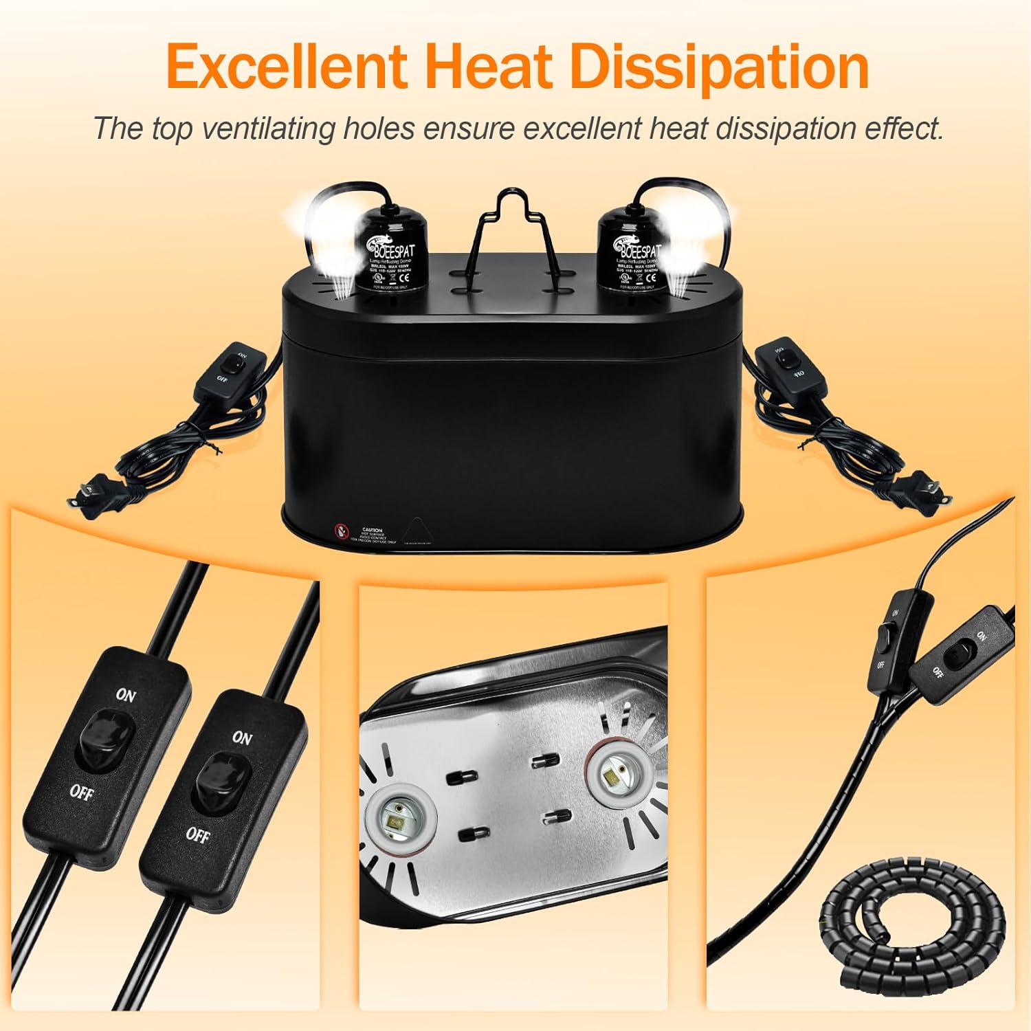 - 【User-friendly Operation】: Equipped with two independent on/off switches, it allows for easy individual control of different bulbs like basking, UVB, and infrared bulbs, suiting various day & night and temperature - regulation.