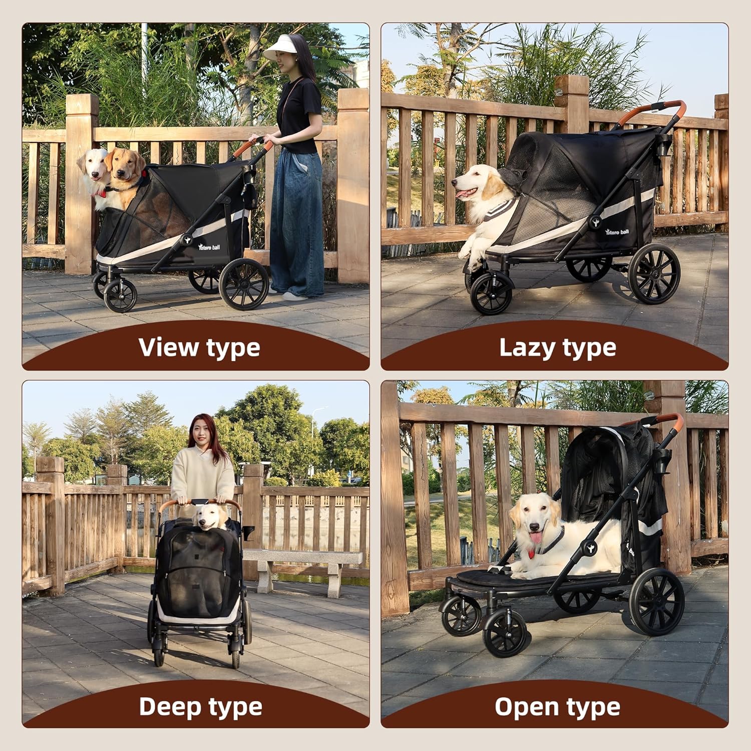 Dog Stroller for Large Dogs One-Click Folding 4 Wheel Foldable Dog Stroller for 2 Dogs with Storage Pocket Suitable for Pets Up to 110LBS (Black, Large)