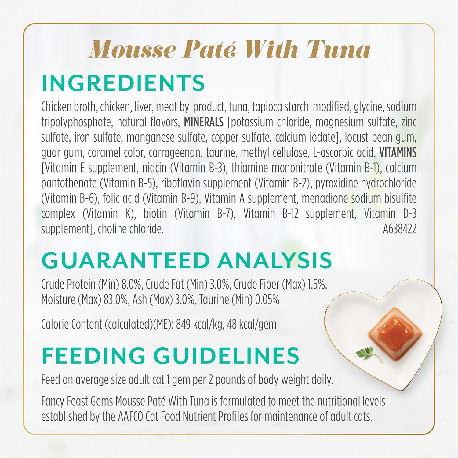 - Cuisine Like You’ve Never Seen: This Fancy Feast Gems mousse cat food pate is crowned with savory gravy for layers of delight.