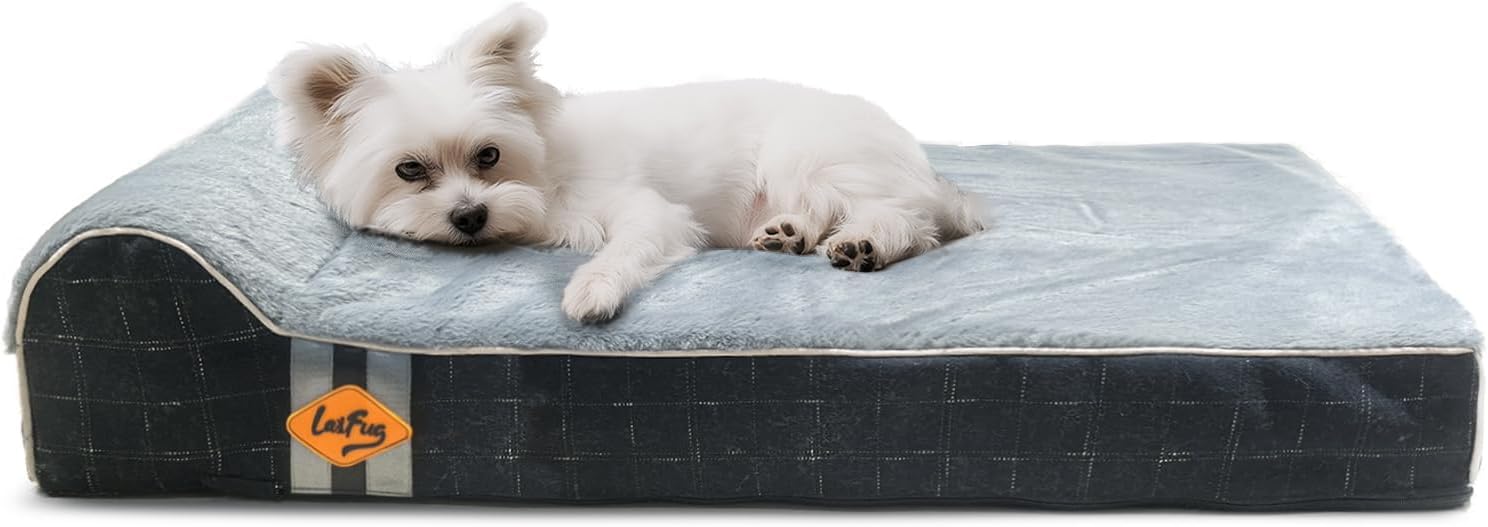 Laifug Orthopedic Memory Foam Dog Bed with Durable Water Proof Liner and Removable Washable Cover (Large (34"x22"x5.5"), Black Grid Gray)