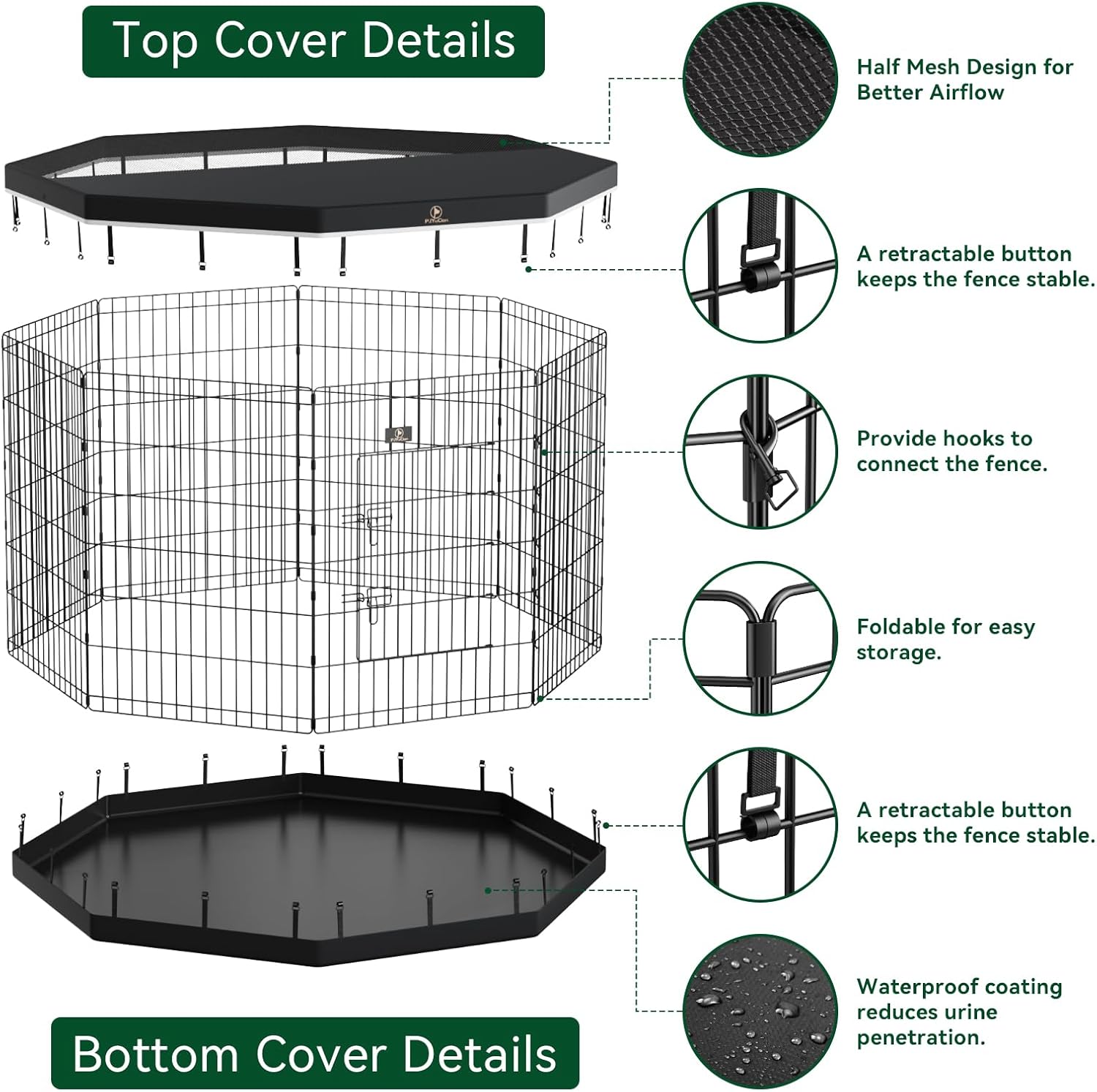 PJYuCien Dog Playpen, 8 Panels 36’’H Dog Pens Indoor with Bottom Pad and Top Cover, Metal Foldable Pet Puppy Exercise Fence Crate Kennel, Better for Medium Animals,Black