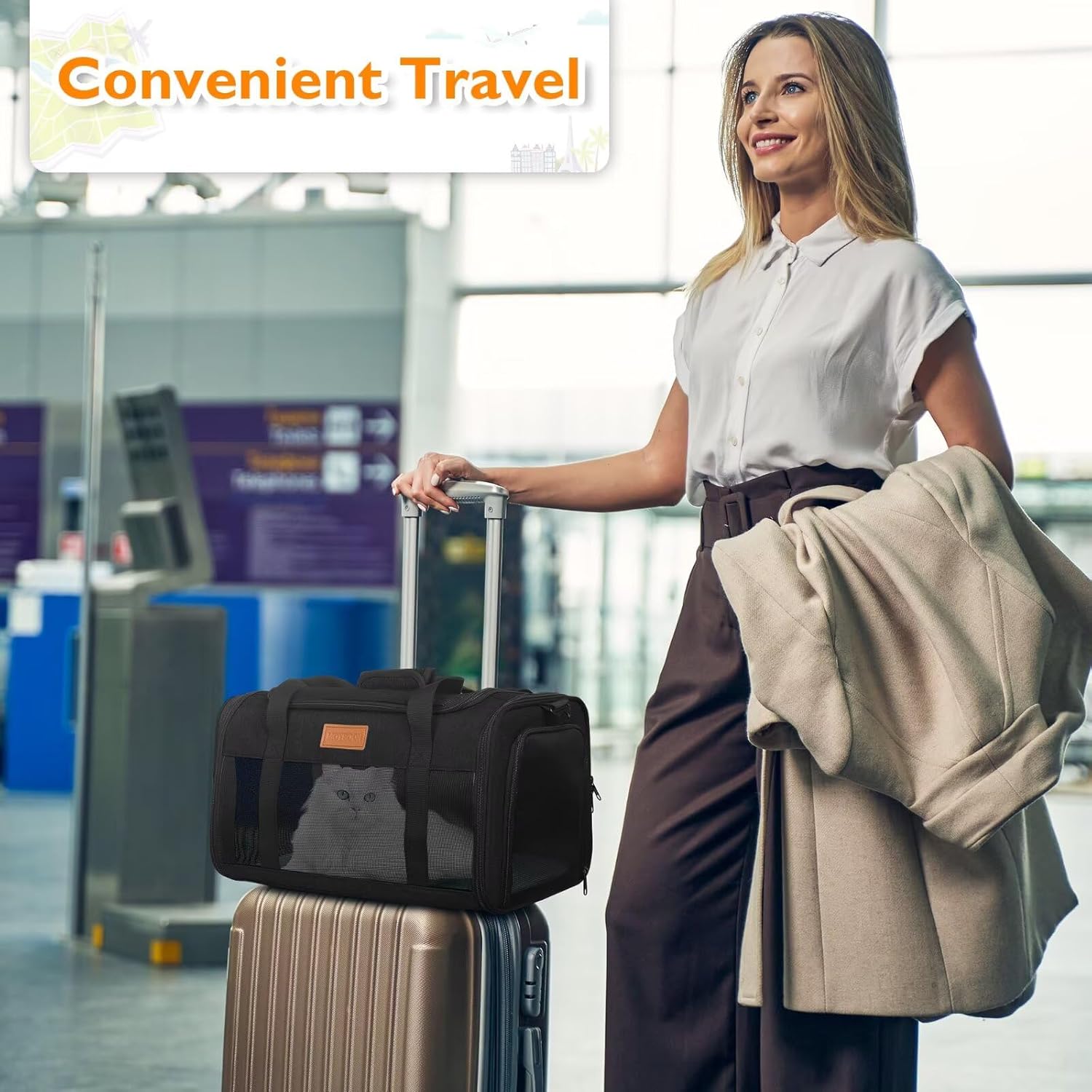 - 【Breathable, Multi-Sided Ventilation Design】 With breathable mesh panels on three sides, the PETUX airline approved cat carrier promotes proper airflow to keep your pet cool and comfortable. The soft, flexible design allows your pet to rest and relax throughout the flight or car ride. The airline approved pet carrier’s thoughtful structure ensures your pet’s safety and comfort