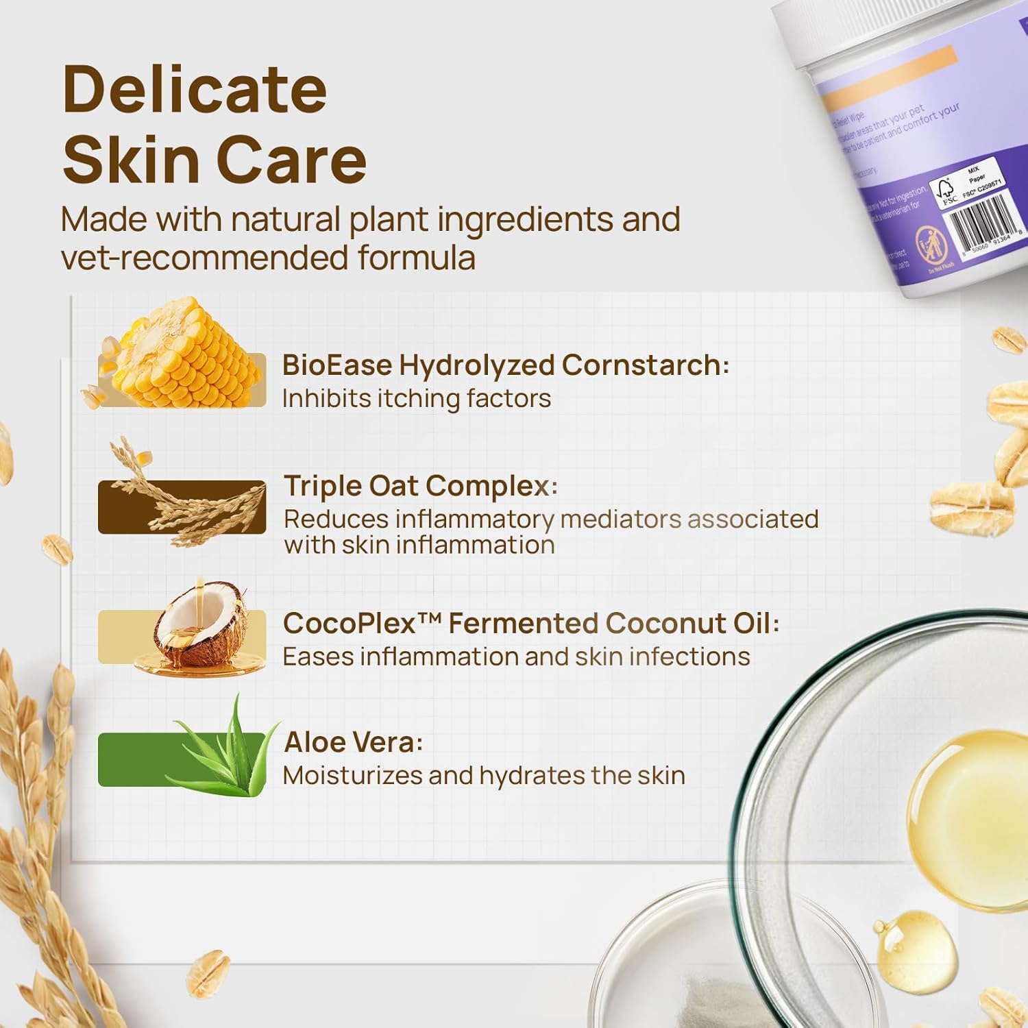 - More Powerful Formula for Root-Level Itch Relief: Itch relief for dogs contain a high concentration of BioEase hydrolyzed cornstarch, which penetrates deeply and offers natural anti-allergic properties for fast and long-lasting itch relief. It effectively inhibits the release of itch factors, addressing itching at its source. Due to its high concentration and absence of artificial fragrances, the wipes have a strong natural plant scent β a true sign of the potency of natural ingredients