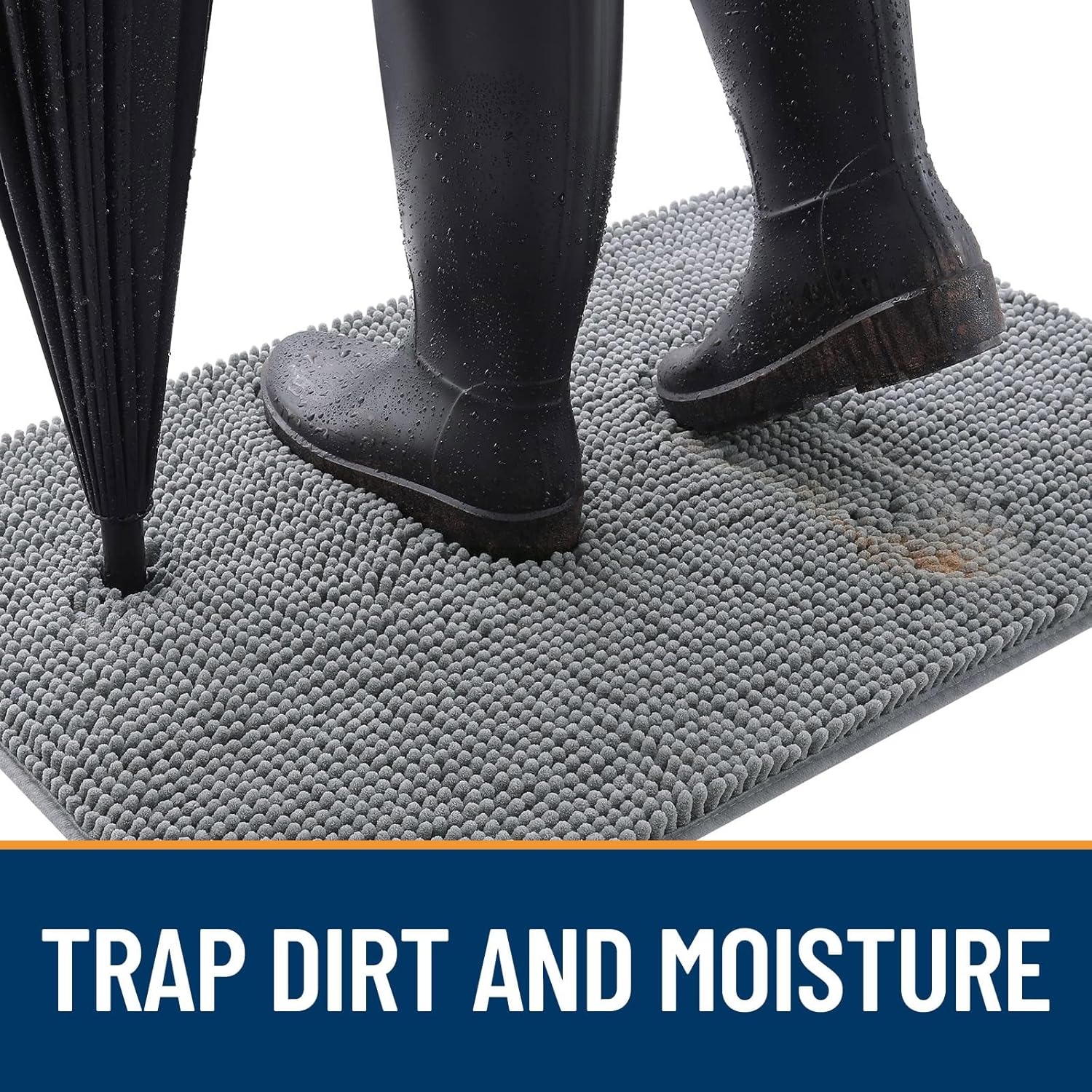 - [ABSORBS MOISTURE AND DIRT] OLANLY indoor dog mat for muddy paws is crafted to efficiently remove dirt and swiftly absorb moisture. With our doormat, your shoes will be instantly clear of any water, dust, grit, muck, sand, sleet, grass, slush, rain, or snow upon entering the house. It's an excellent choice for use as an entryway door mat, a welcoming door mat, or a dirt-trapping mat.