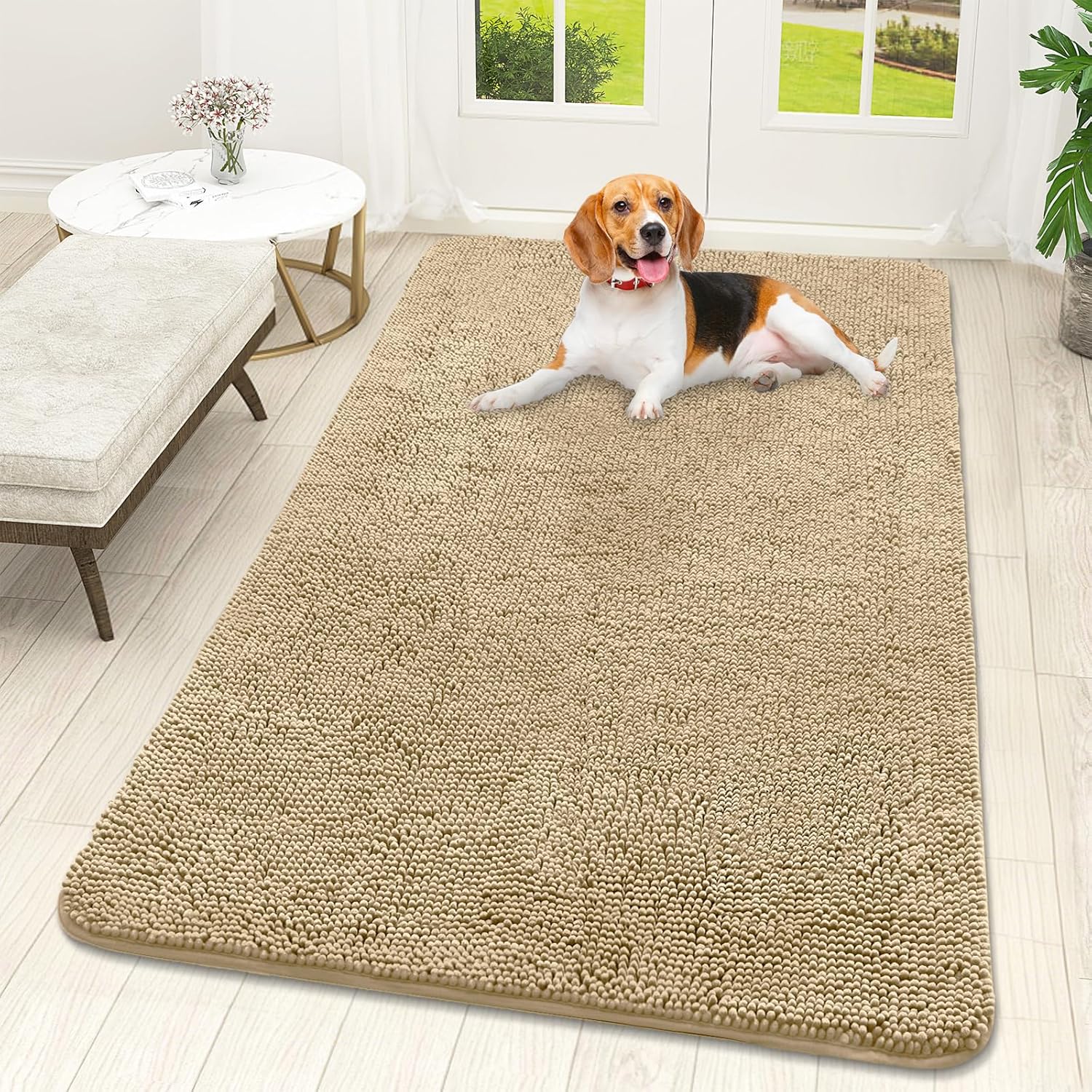 OLANLY Dog Door Mat for Muddy Paws 59x32, Absorbs Moisture and Dirt, Absorbent Non-Slip Washable Doormat, Quick Dry Chenille Mud Mat for Dogs, Entry Indoor Entryway Carpet for Inside Floor, Beige
