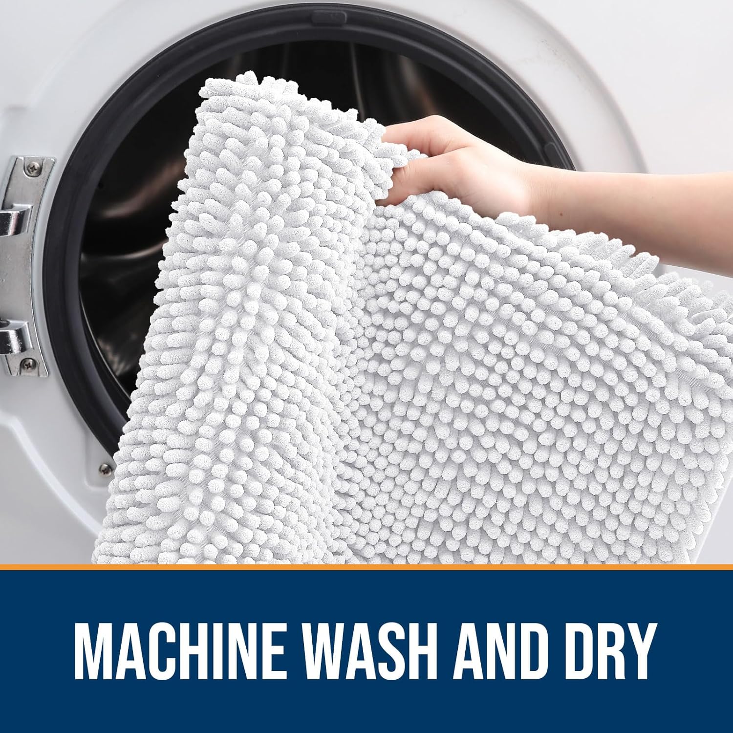 OLANLY Dog Door Mat for Muddy Paws 44x24, Absorbs Moisture and Dirt, Absorbent Non-Slip Washable Doormat, Quick Dry Chenille Mud Mat for Dogs, Entry Indoor Entryway Carpet for Inside Floor, White