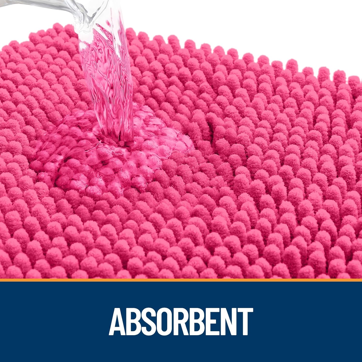 OLANLY Dog Door Mat for Muddy Paws 59x20, Absorbs Moisture and Dirt, Absorbent Non-Slip Washable Doormat, Quick Dry Chenille Mud Mat for Dogs, Entry Indoor Entryway Carpet for Inside Floor, Hot Pink