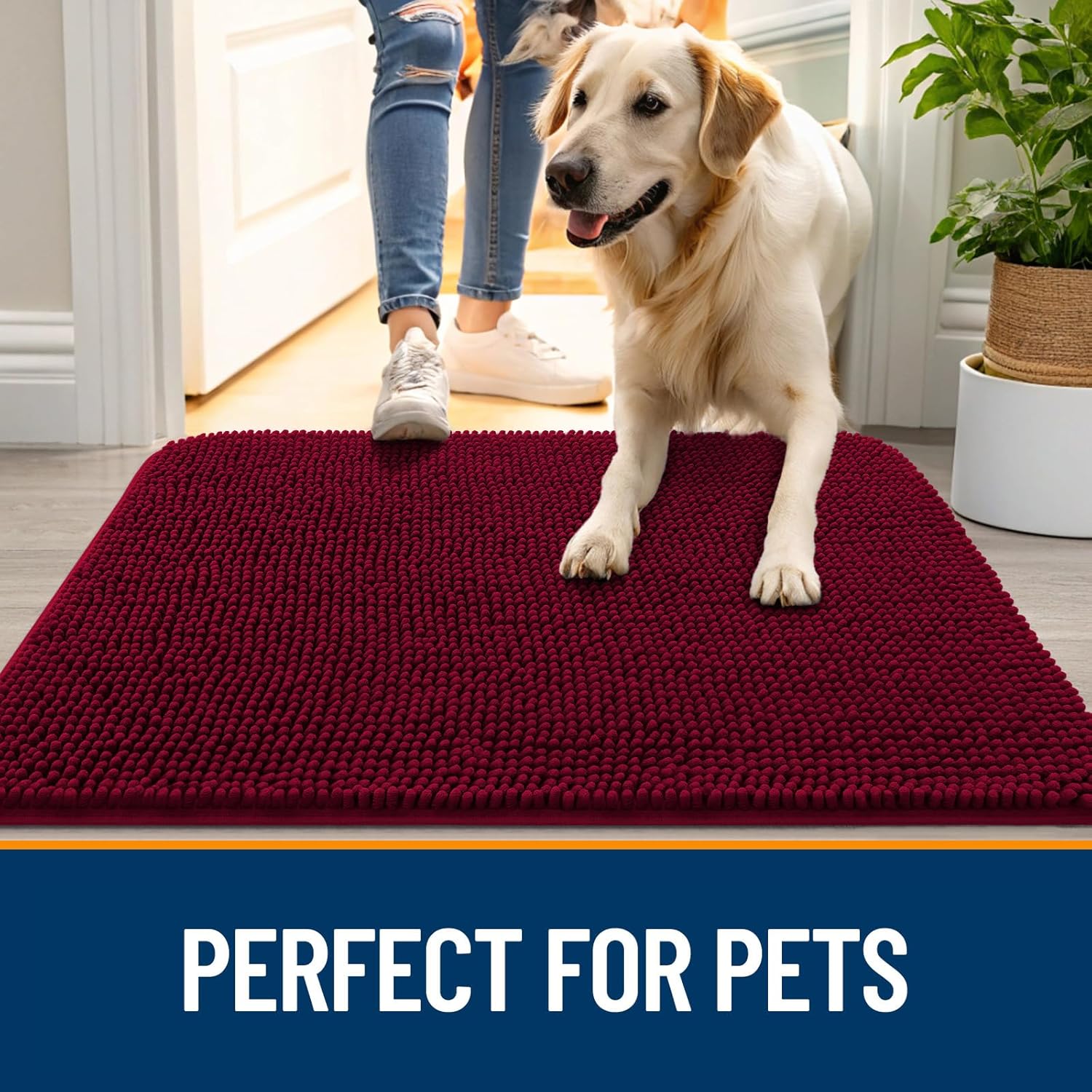 OLANLY Dog Door Mat for Muddy Paws 30x17, Absorbs Moisture and Dirt, Absorbent Non-Slip Washable Doormat, Quick Dry Chenille Mud Mat for Dogs, Entry Indoor Entryway Carpet for Inside Floor, Burgundy