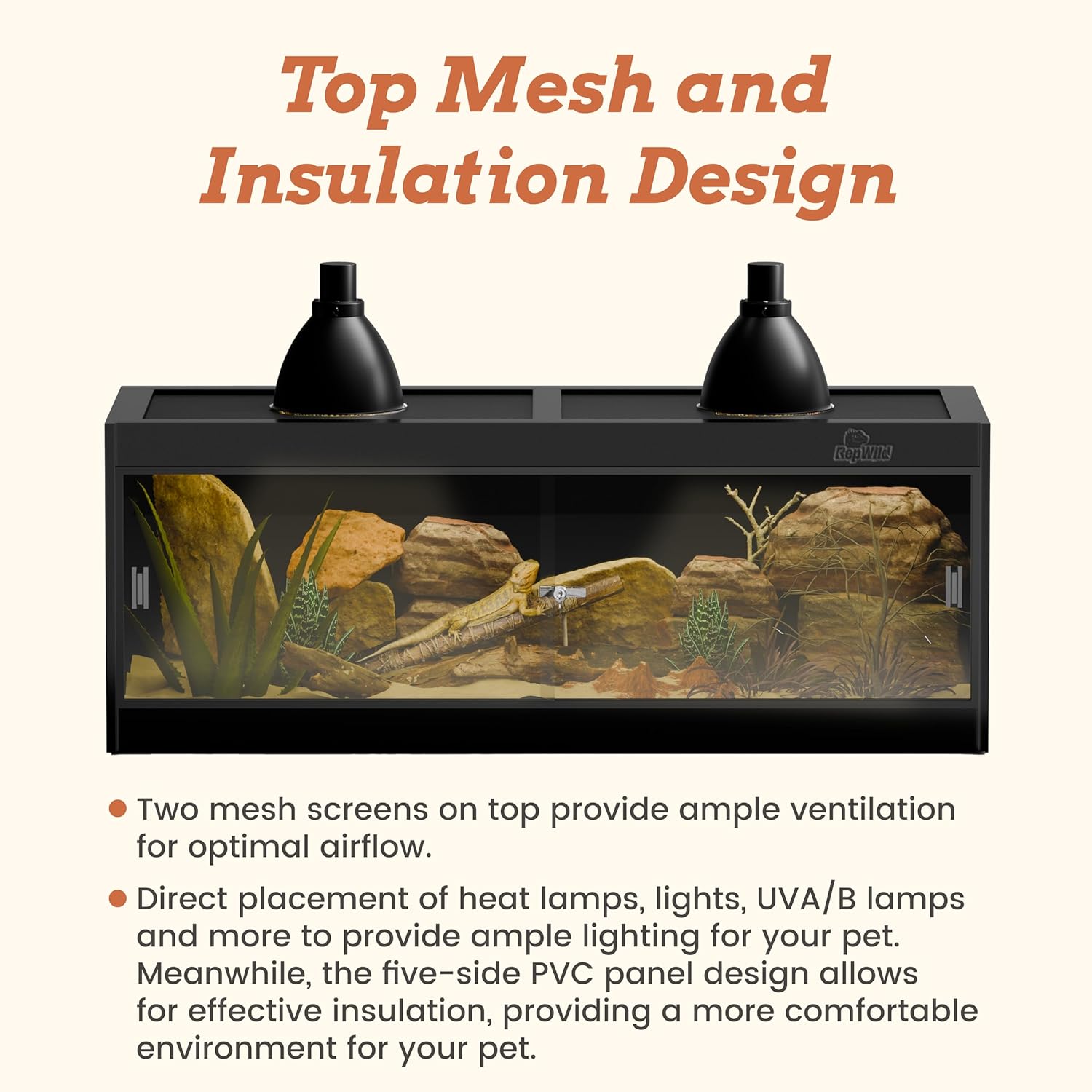 65 Gallon PVC Reptile Enclosure, RepWild 48"x18"x18" Terrarium/Tank with Heavy-Duty Screen Top, Glass Sliding Doors & Lock for Bearded Dragons, Ball Python, Geckos, Lizards