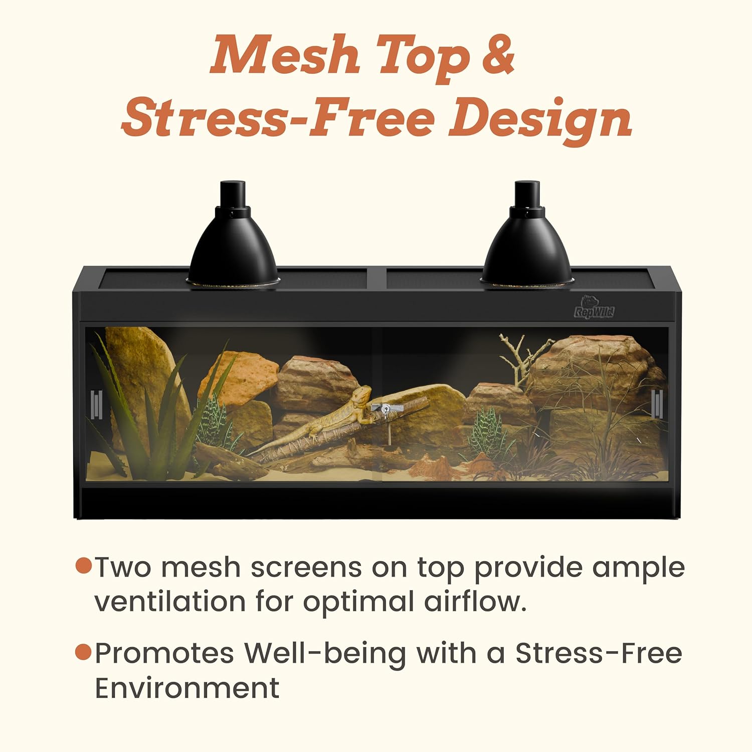 - 【Secure Glass Door & Ventilated Top】Features a front-opening tempered glass door with a lock and handle for easy access and security. The durable mesh top ensures excellent ventilation and allows UVB and heat penetration, creating a comfortable habitat for your pets.