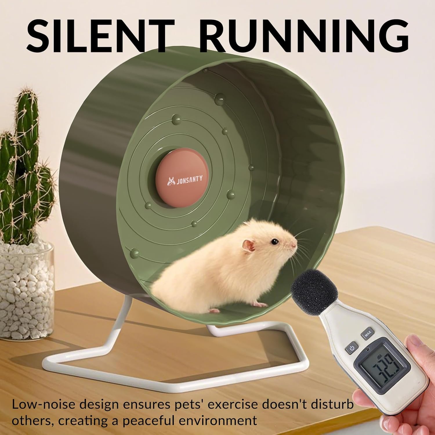 9.5" Silent Hamster Wheel, Non-Slip Track, Exercise, Release Stress, Relieve Anxiety, Adjustable Height Stand, for Syrian Dwarf Hamster, Gerbil, Mice, Other Small Medium Sized Pets, Green