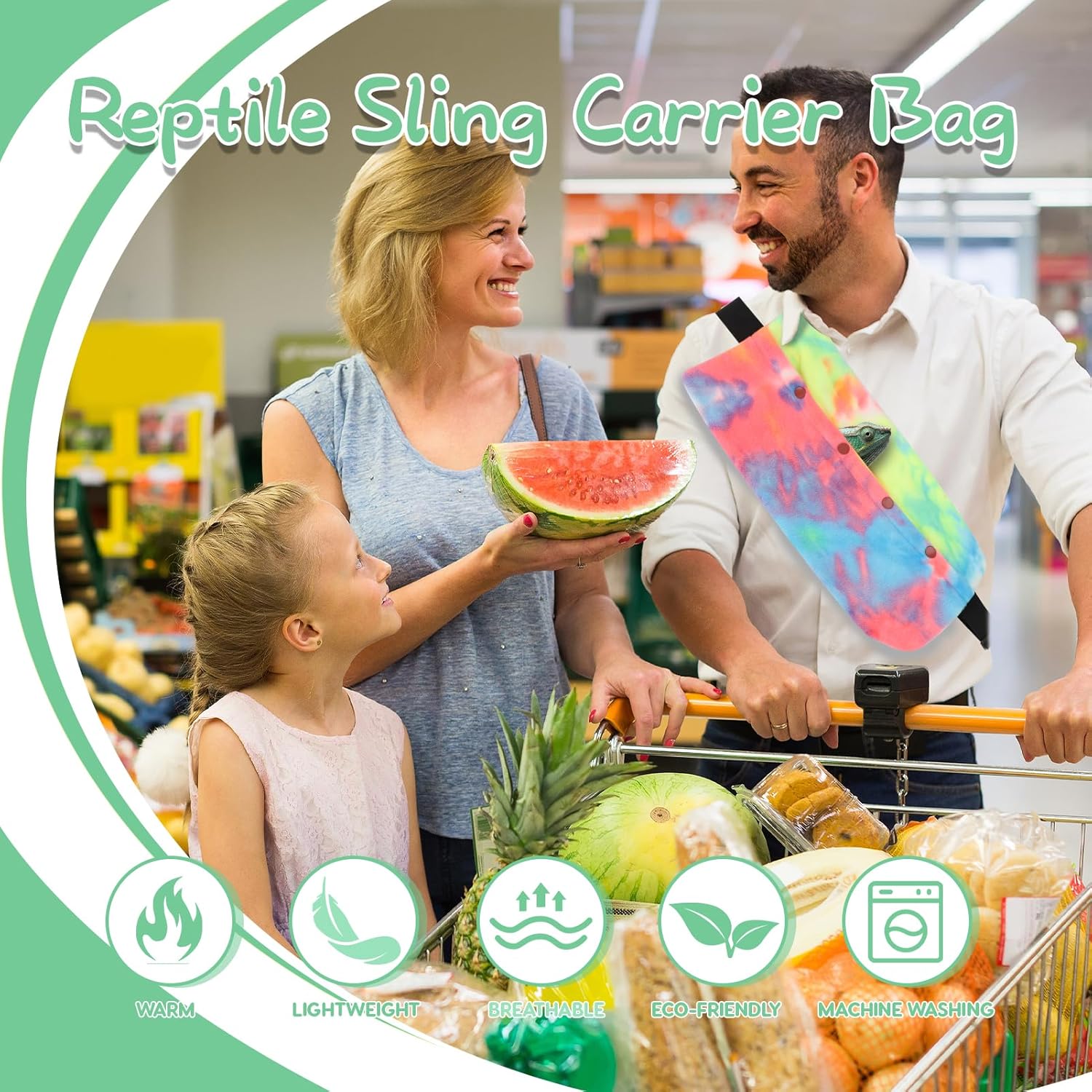Bearded Dragon Leash and Harness Set, Adjustable Bearded Dragon Carrier Sling Leash and Carrier, Lizard Reptile Small Pet Training Leashes and Beardie Snuggle Sling Bag for Outdoor Travel (Rainbow)