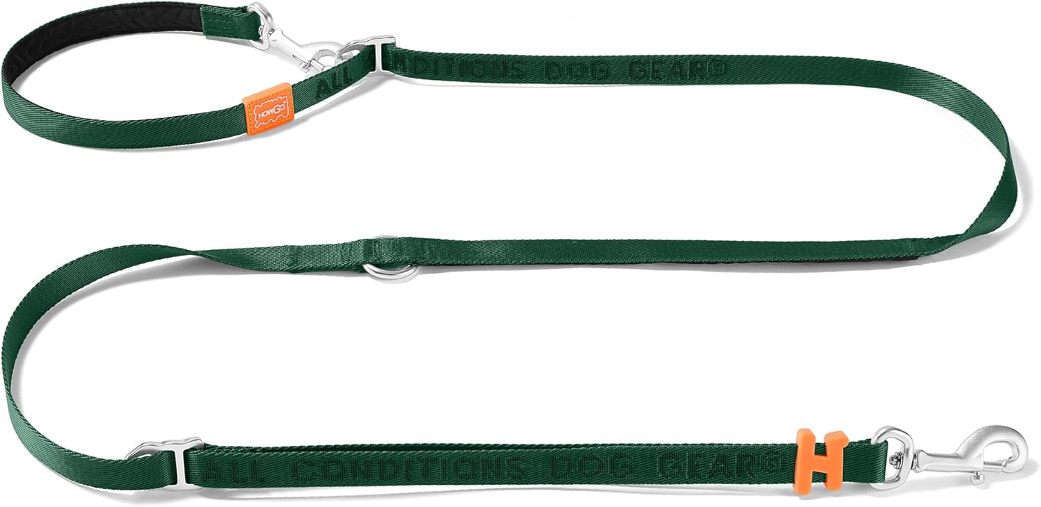HOWGO 8-in-1 Multifunctional Hands Free Dog Training Leash with Padded Handle, 8.5 FT Nylon Adjustable Length, Lightweight Aviation Aluminum, Crossbody Waist Leash for Puppy Medium Large Dogs (Green)