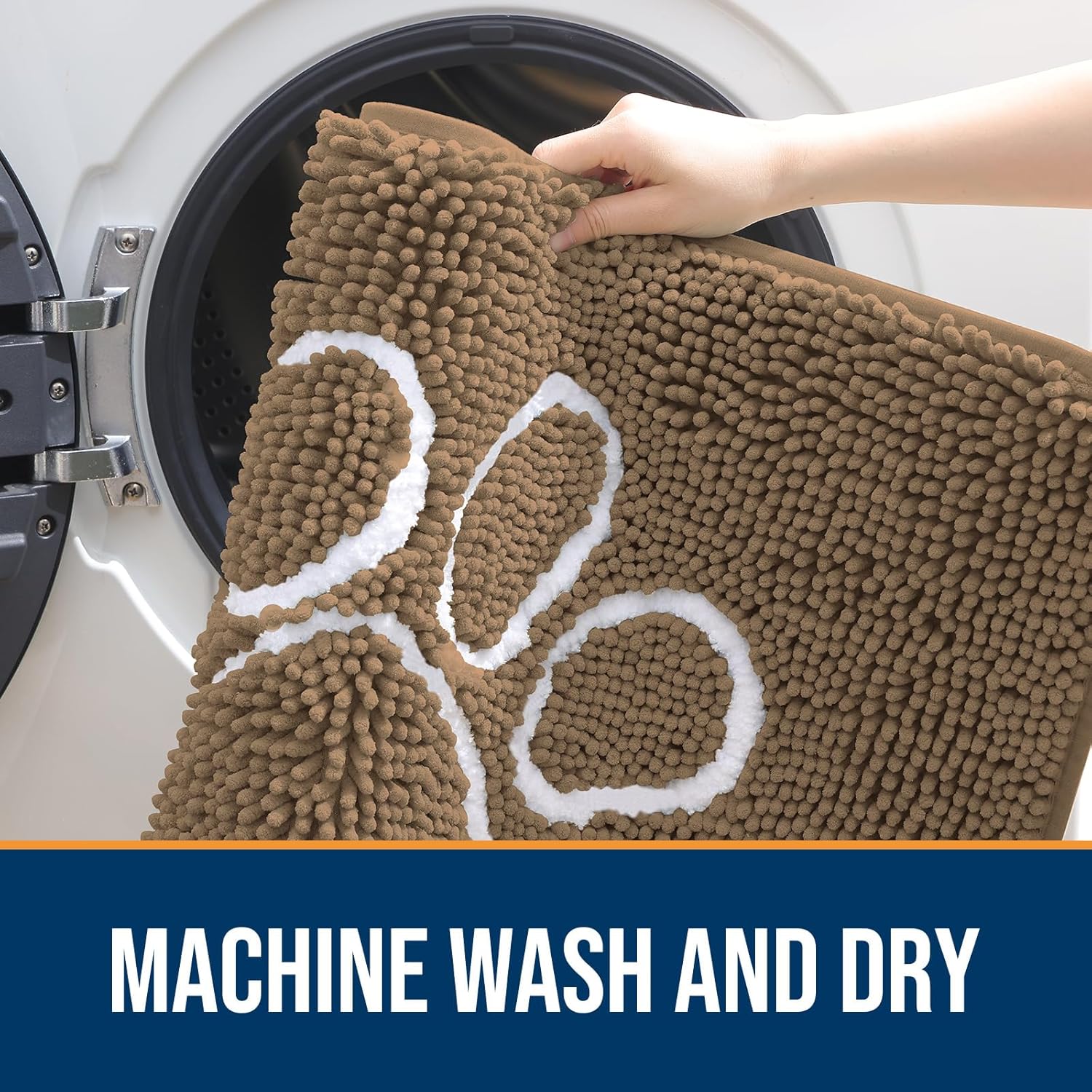 OLANLY Door Mat for Muddy Dog Paws 47x32, Ultra Absorbent Chenille Mud Doormat with Paw Print Design, Non-Slip Washable Doormat for Indoor Entryway, Quick-Dry Pet Bed Mats for Dirty Dogs, Tan