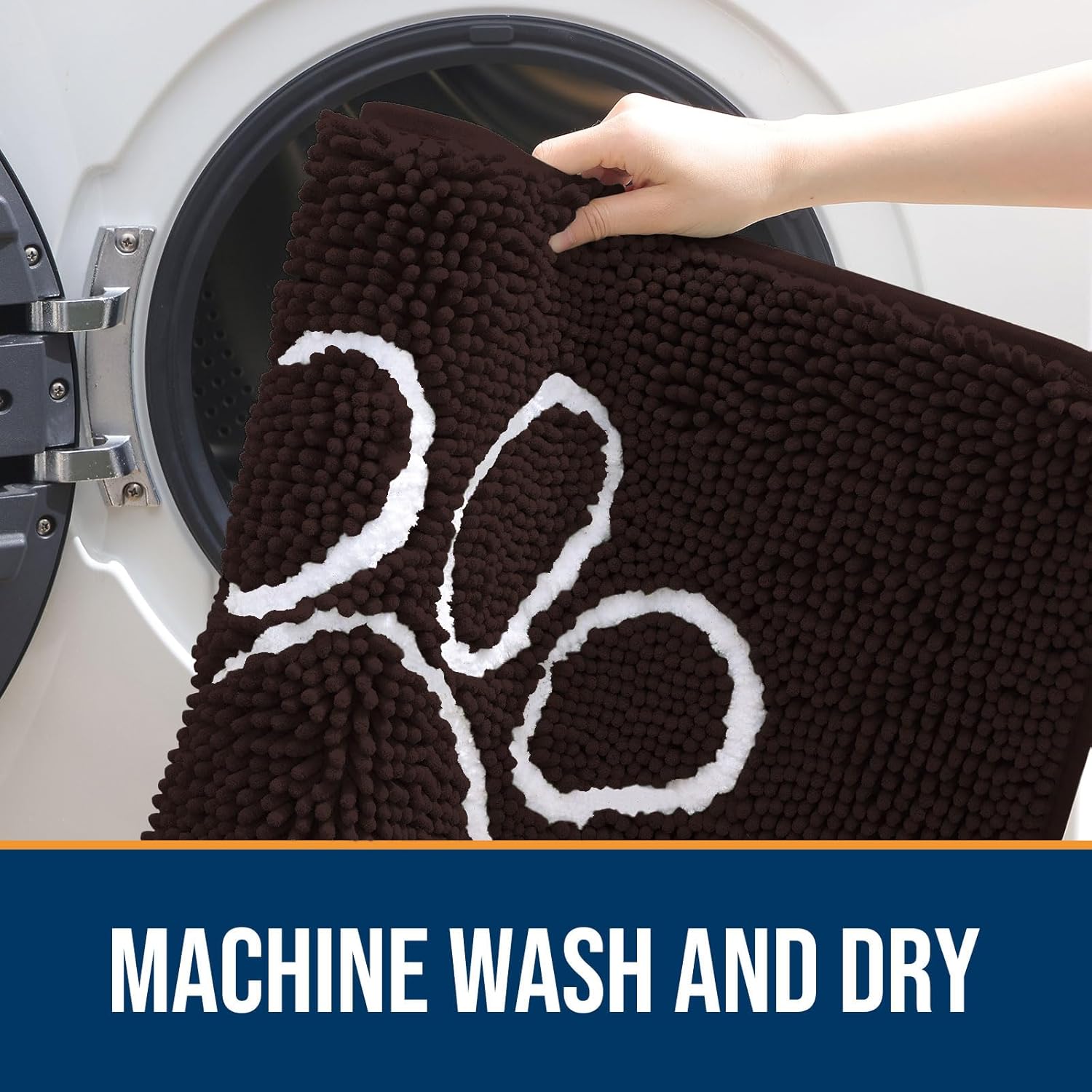 OLANLY Door Mat for Muddy Dog Paws 59x24, Ultra Absorbent Chenille Mud Doormat with Paw Print Design, Non-Slip Washable Doormat for Indoor Entryway, Quick-Dry Pet Bed Mats for Dirty Dogs, Brown