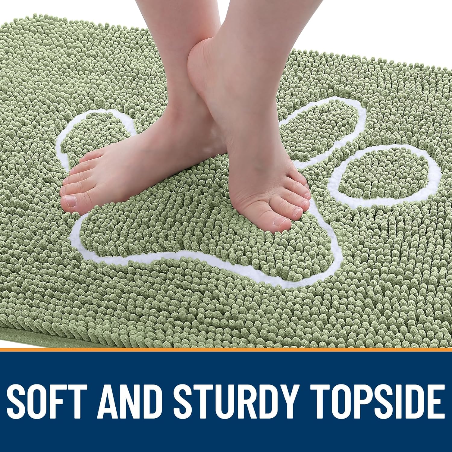 OLANLY Door Mat for Muddy Dog Paws 48x30, Ultra Absorbent Chenille Mud Doormat with Paw Print Design, Non-Slip Washable Doormat for Indoor Entryway, Quick-Dry Pet Bed Mats for Dirty Dogs, Sage Green