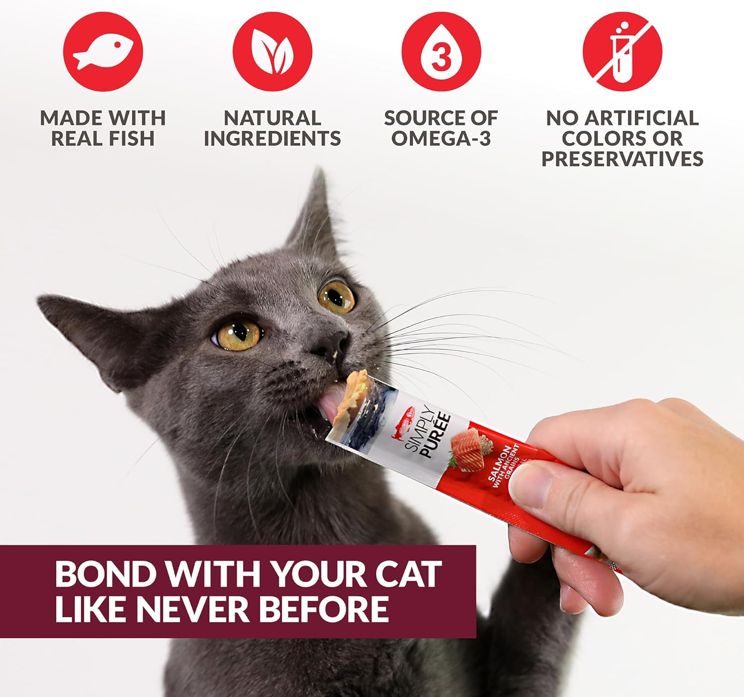 Simply Puree Salmon with Ancient Grains Tub for Cats | 48 Individual Servings | High-Protein, Grain-Enriched Cat Treat | All-Natural, No Artificial Additives | Smooth and Delicious Puree