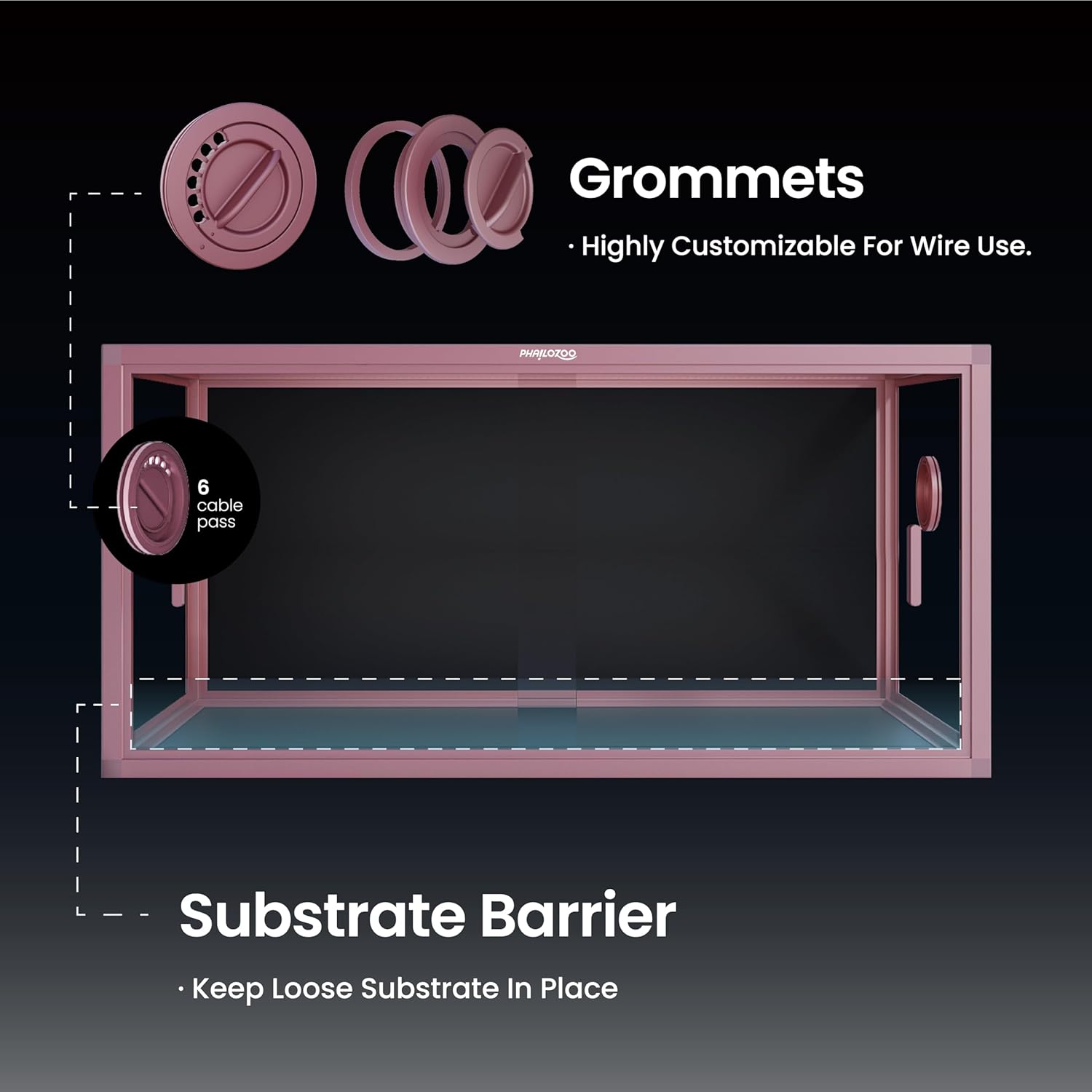- ăEasy MaintenanceăFront opening reptile terrarium with door handles included for easy cleaning & feeding. No more suction problems or fingerprints all over the doors. Substrate barrier to keep substrate in place.