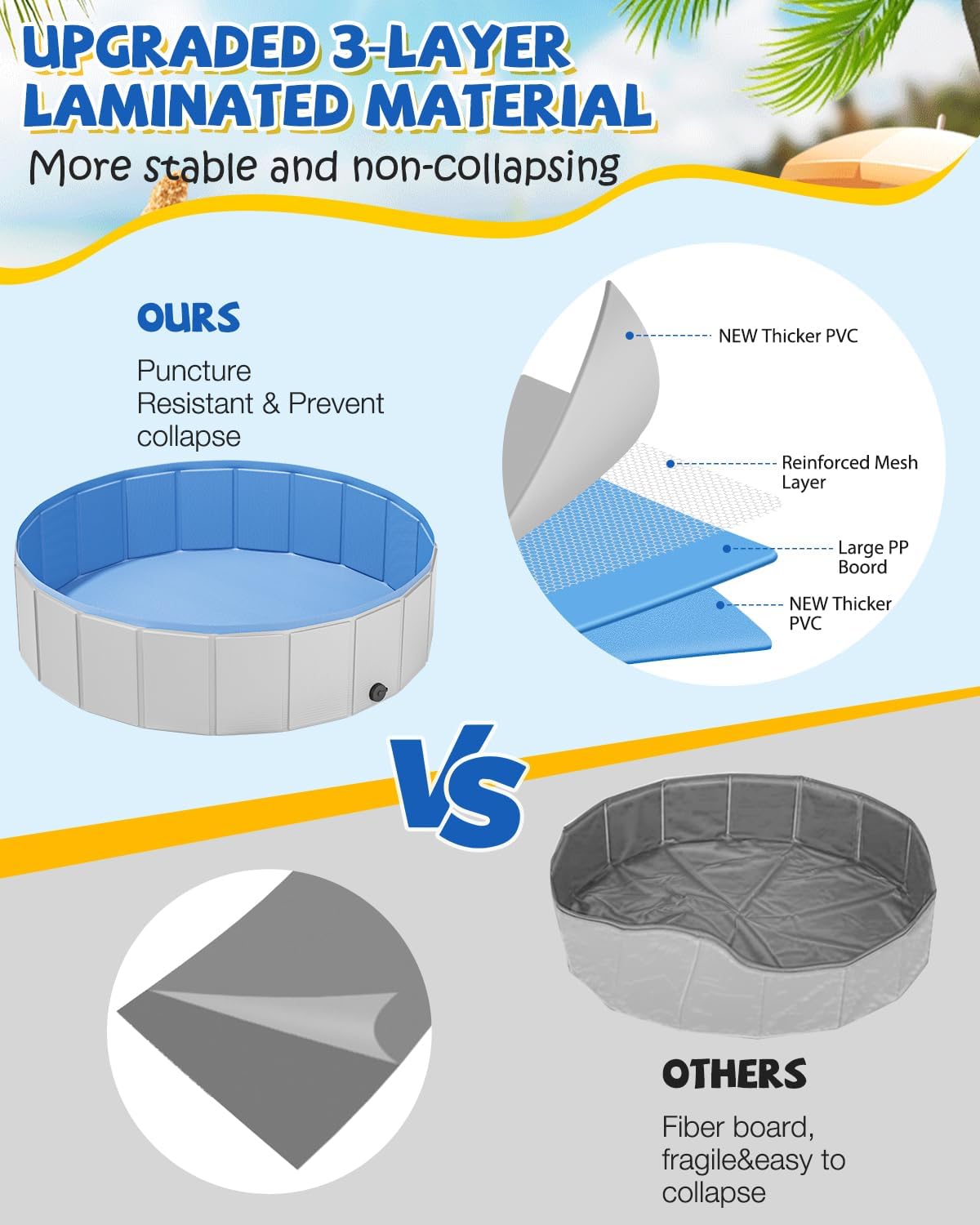- PORTABLE & CONVENIENT β The dog bath pool is portable and convenient for people to carry and store at any time, which allows your lovely pets to enjoy in the water; There is no need to inflate