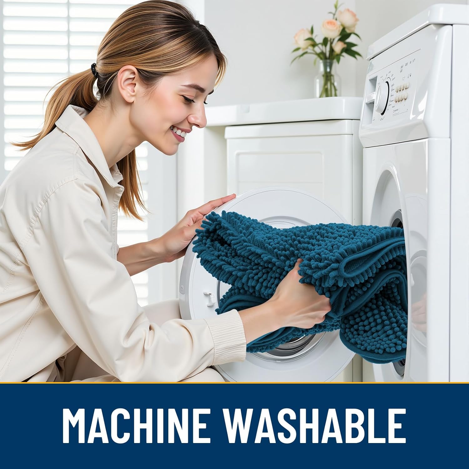 Smiry Dog Door Mat for Muddy Paws 24x16, Absorbs Moisture and Dirt Doormat, Non-Slip Washable Quick Dry Chenille Front Door Mat Indoor Entrance, Entryway Carpet for Inside Floor, Atlantic Blue