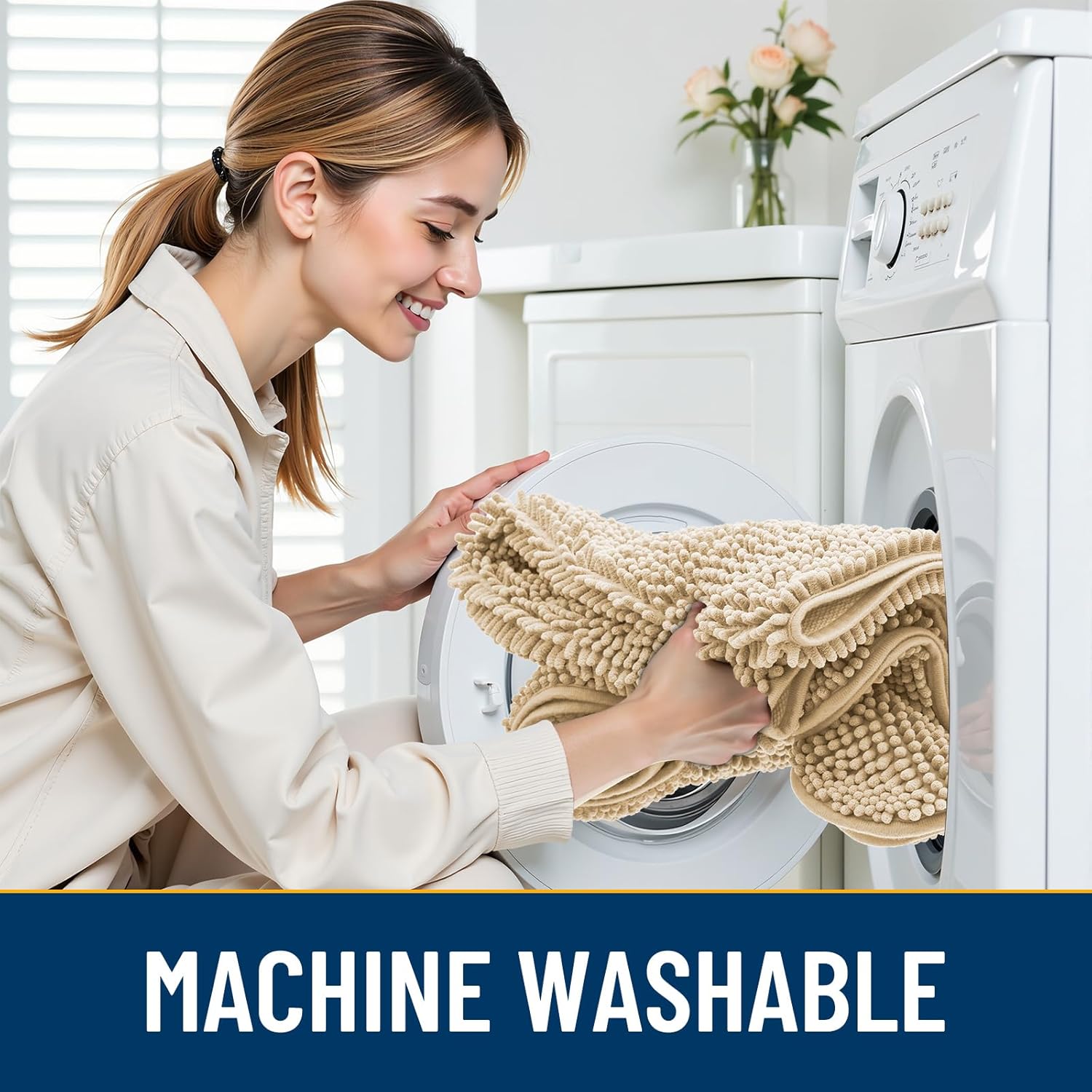 Smiry Dog Door Mat for Muddy Paws 47x32, Absorbs Moisture and Dirt Doormat, Non-Slip Washable Quick Dry Chenille Front Door Mat Indoor Entrance, Entryway Carpet for Inside Floor, Beige