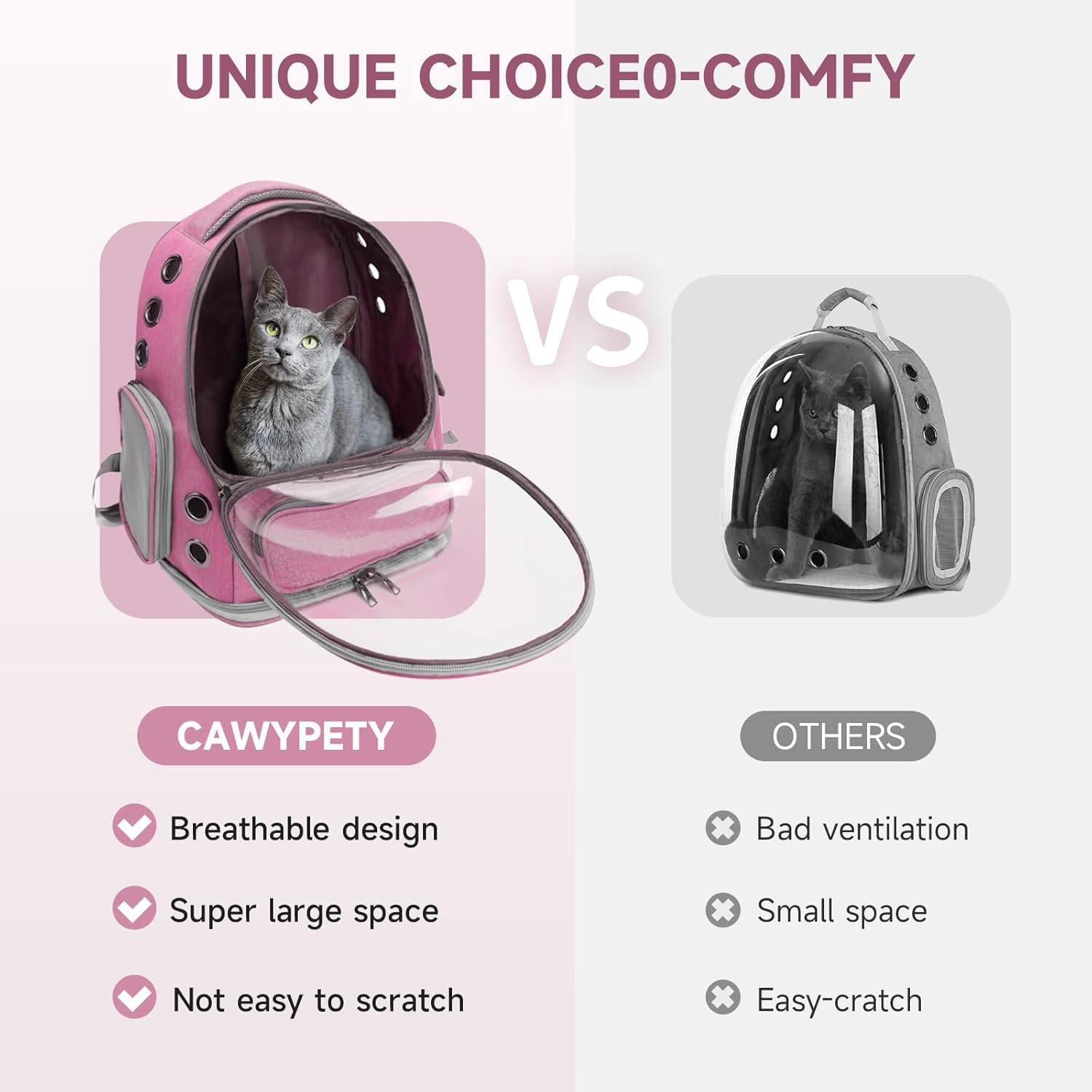 - VENTILATED BACKPACK: With a breathable bubble window in the front, this clear pet backpack allows cats to enjoy the sun without feeling stuffy, there are exits on the side for pets to enter and exit, and you can also pet your kitten, which is the best ventilation in a space pack ever.