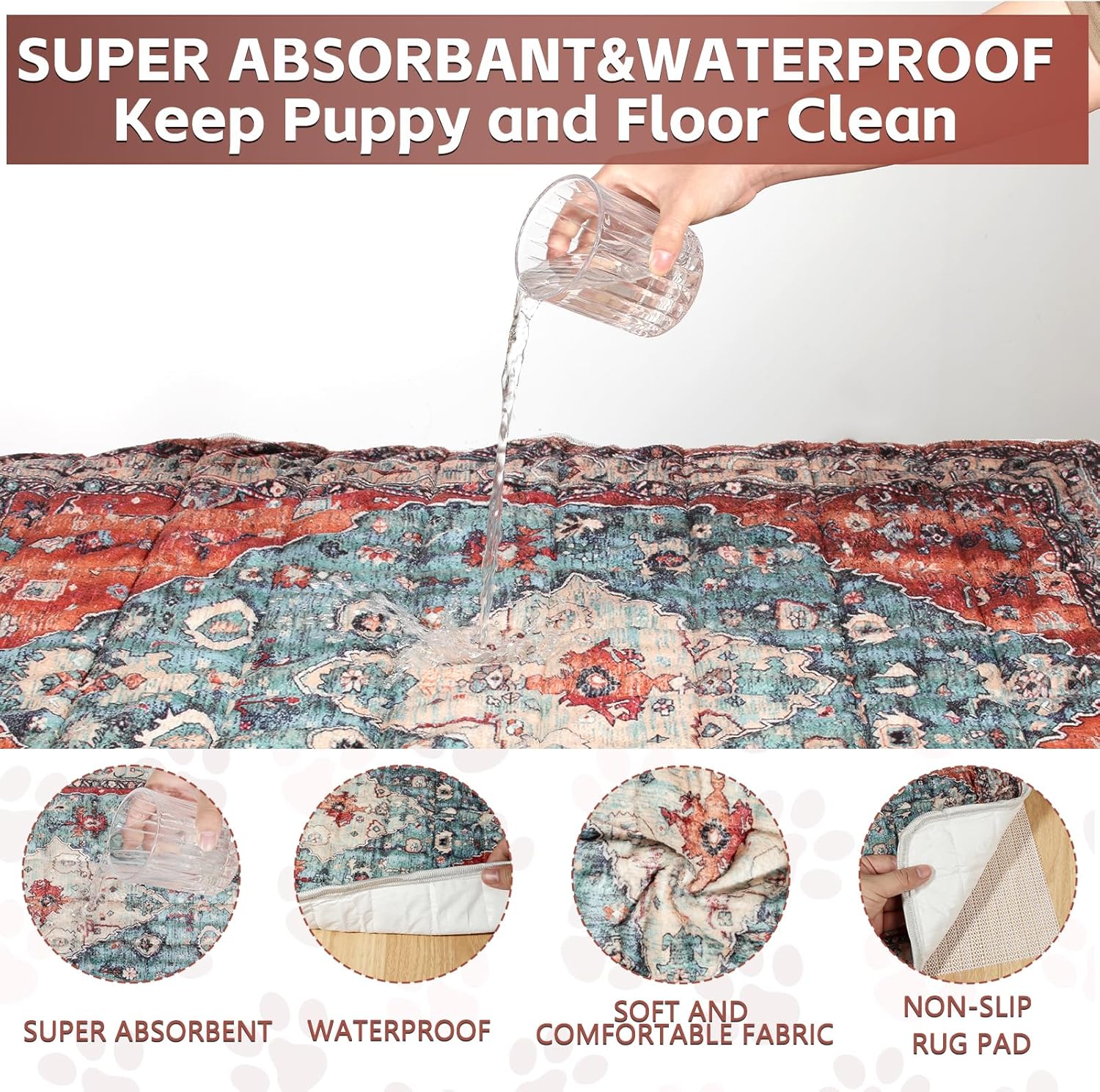 - 🐾 【Super Absorbent & Leakproof Protection】Constructed with 4 layers of super absorbent material, this pad offers excellent leakage protection with its waterproof TPU layer. It quickly absorbs urine and keeps floors, carpets, and furniture dry, providing a clean and odor-free environment for your dog.