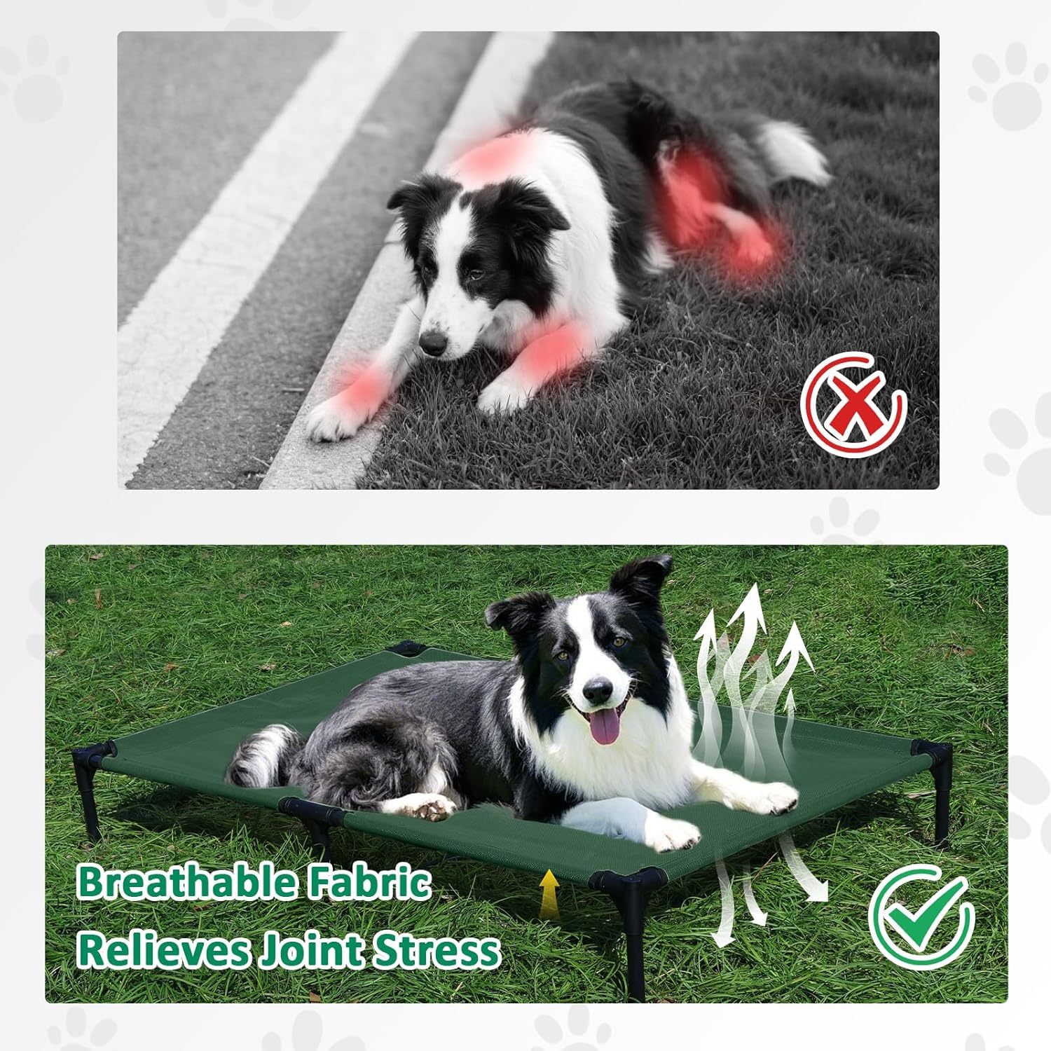 - BREATHABLE TESLIN MESH: This outdoor dog bed comes with breathable and durable Teslin mesh, provides airflow and firm support to relieve joint pressure. Our dog cot bed is suitable for dogs of all life stages, from puppy to the senior