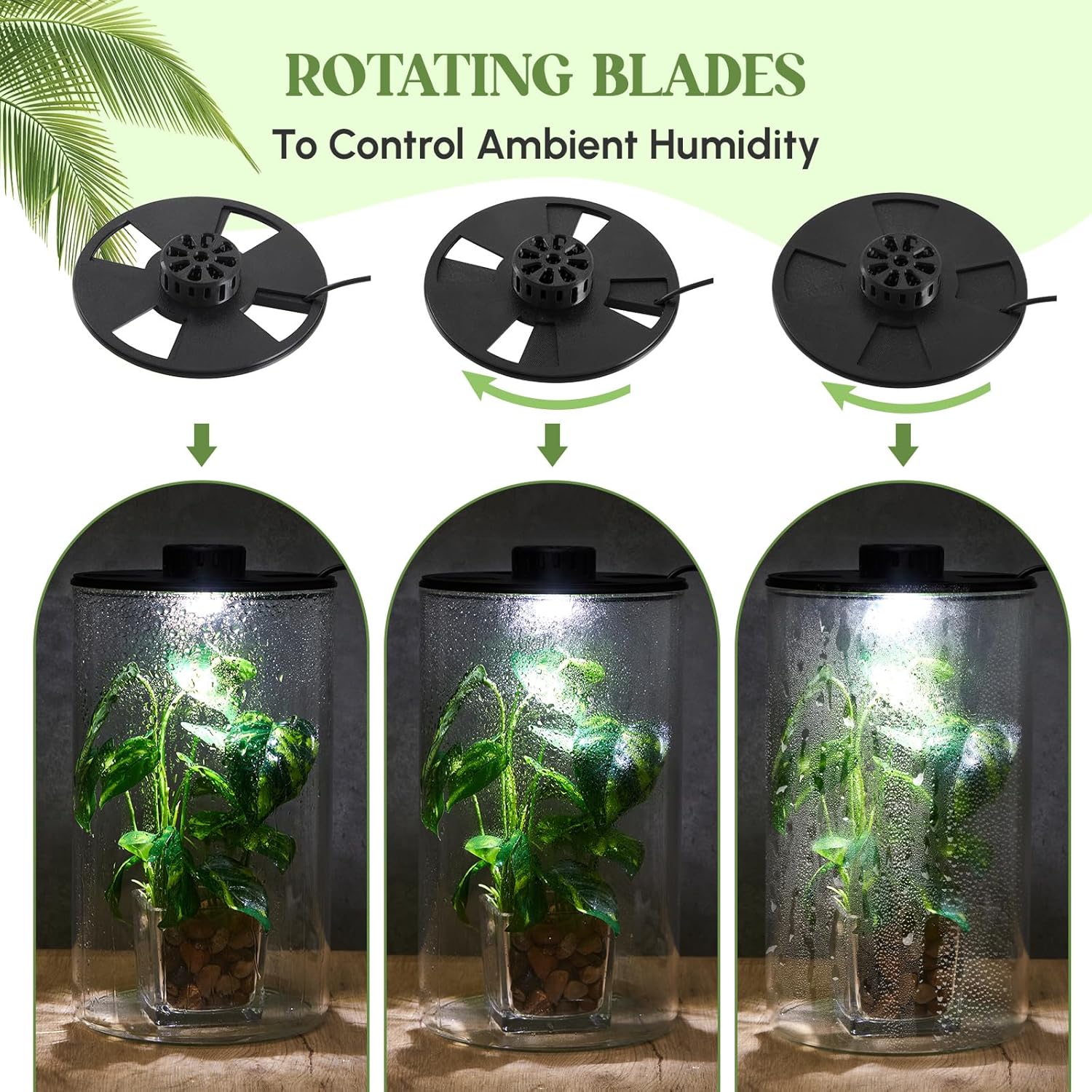- Efficient and Adjustable Lighting: our 3W LED light is suitable for small plants and mini aquariums; You can easily change between strong and weak lighting modes, providing the right amount of light for your succulents or mosses; The adjustable lighting and rotating lamp base allow you to control the ventilation and humidity inside the bottle, which is especially useful for plants that require high humidity