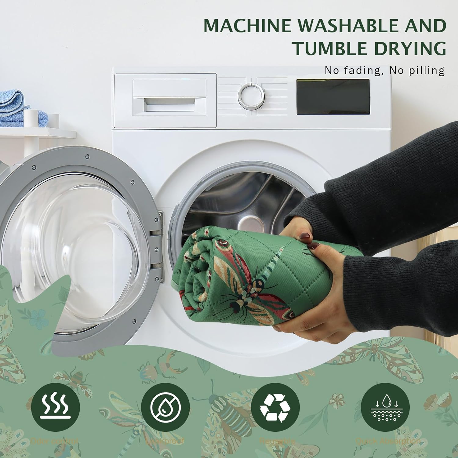 IEUUMLER Washable Pee Pads for Dogs, 2 Pack Insect Pattern Reusable Waterproof Puppy Potty Pads, Non-Slip Absorbent Pet Training Pads for Playpen Crate Bed EU014