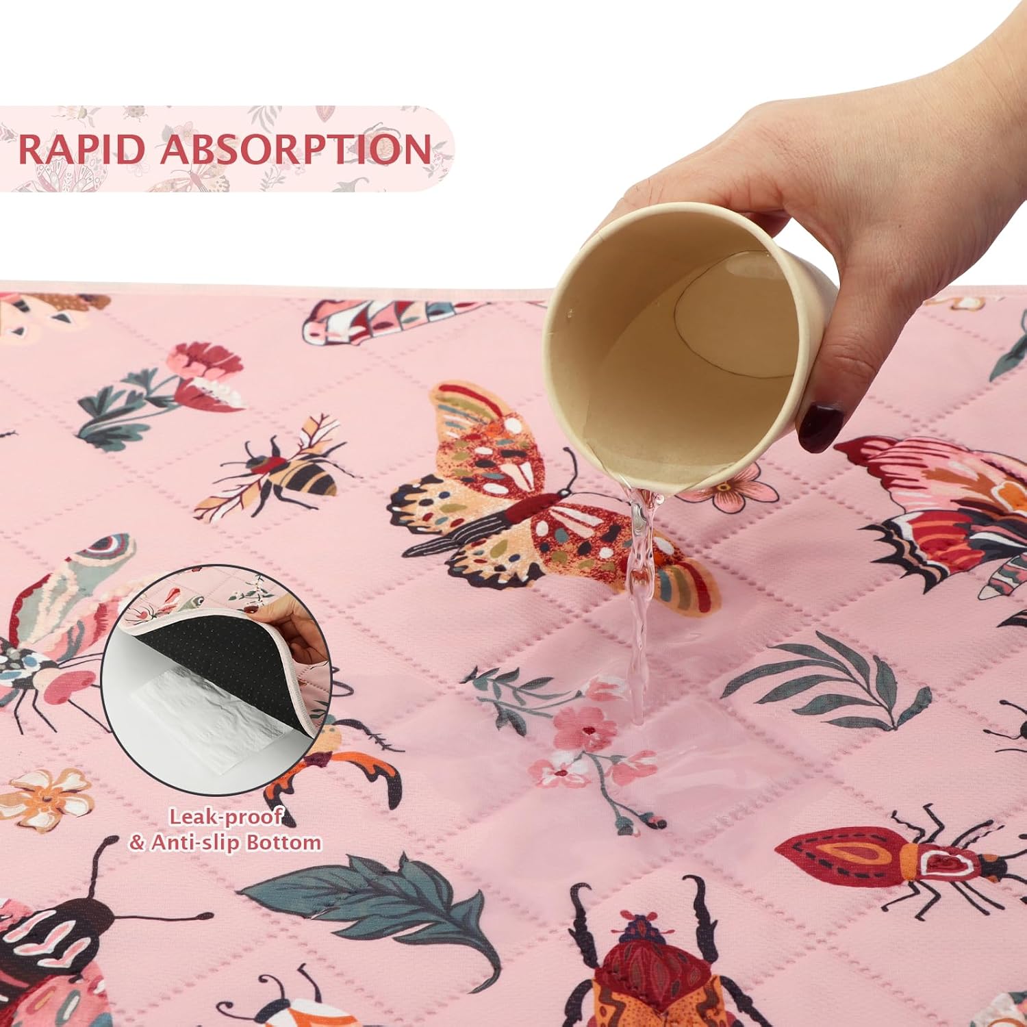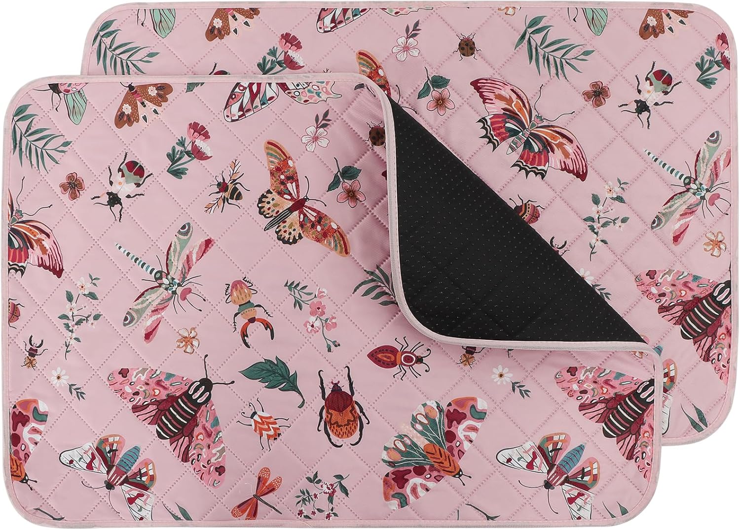 IEUUMLER Washable Pee Pads for Dogs, 2 Pack Insect Pattern Reusable Waterproof Puppy Potty Pads, Non-Slip Absorbent Pet Training Pads for Playpen Crate Bed EU014