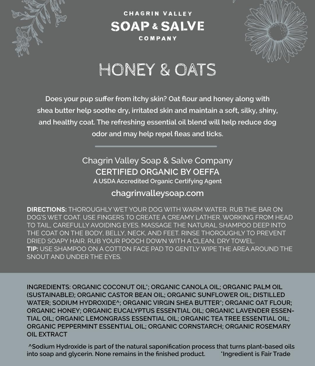 Chagrin Valley Soap & Salve Certified Organic Dog Shampoo and Conditioner – Puppy Shampoo Itchy Skin Relief and Puppy Essentials - Natural Handmade Honey & Oats, 3.8 oz Bar Soap
