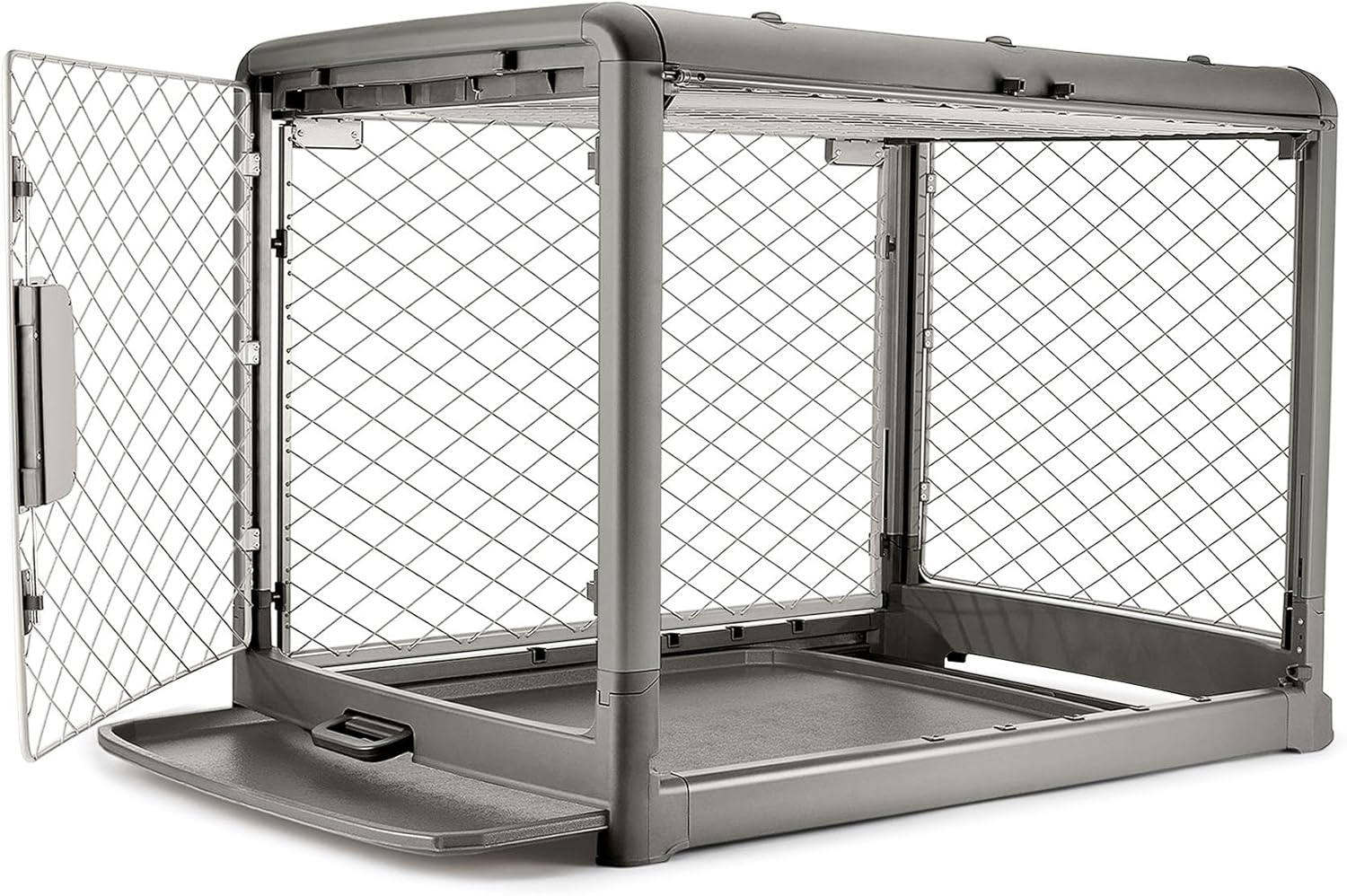 - SAFE AND RELIABLE: Patented diamond mesh prevents pinching to jaws or paws while dual latches, inaccessible to your pup from the inside, keep even the most determined dogs secure. Solid single-piece frame with rounded corners eliminates sharp edges. Baby industry-grade materials ensure your dog's safety with the same standards used for children's products.