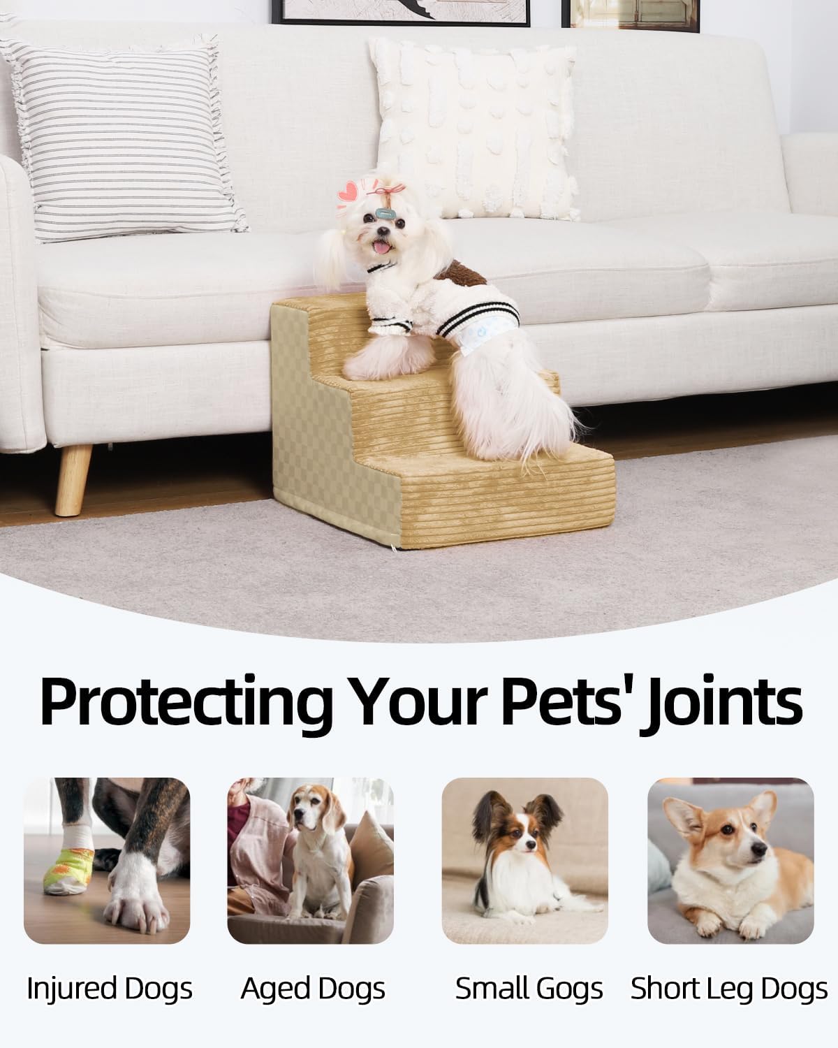 Dog Stairs for Small Dogs,13" H,3-Step Dog Steps for Bed and Couch with High Density Foam,Non-Slip Pet Steps for Doggy and Cat,Pet Stairs with a Washable Cover,Khaki
