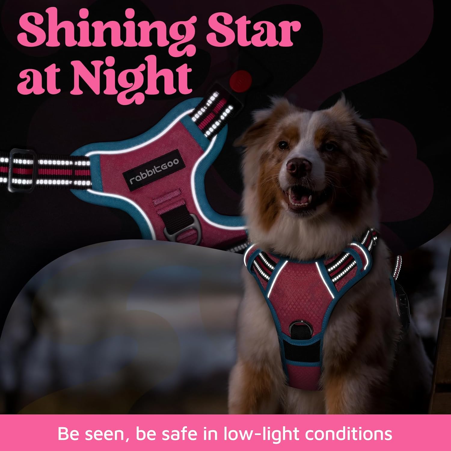 rabbitgoo Dog Harness for Large Dogs, No Pull Pet Vest with 3 Buckles, Adjustable Soft Padded Pet Harness with Easy Control Handle and Reflective Strips, Rose Pink & Blue, XL