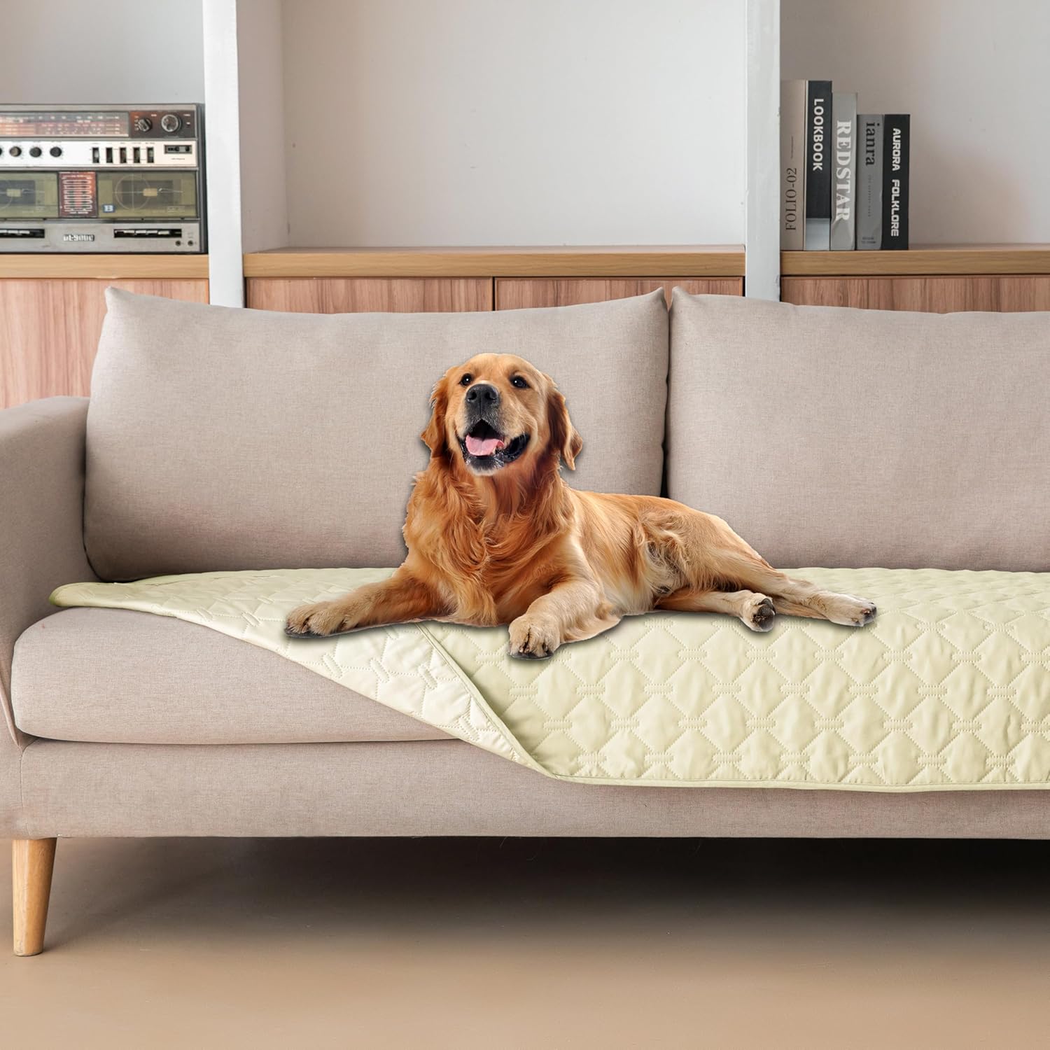 gogobunny 100% Double-Sided Waterproof Dog Bed Cover Pet Blanket Sofa Couch Furniture Protector for Puppy Large Dog Cat, Reversible (30x90 Inch (Pack of 1), Dark Cream/Light Cream)