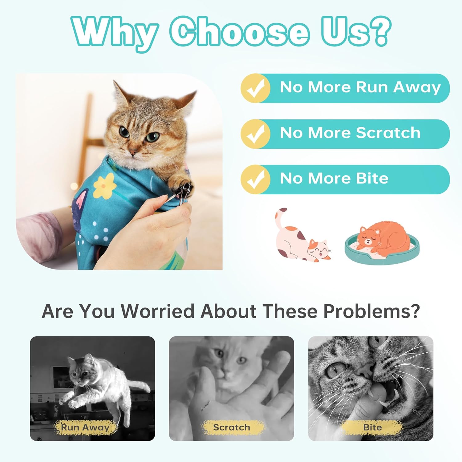 - Reliable and Slip-Proof Design: With its secure wrap-around design, our cat grooming wrap ensures, just a simple motion ensures that your cat is tightly wrapped and won't slide or come loose! This allows for safe and controlled handling during various grooming procedures