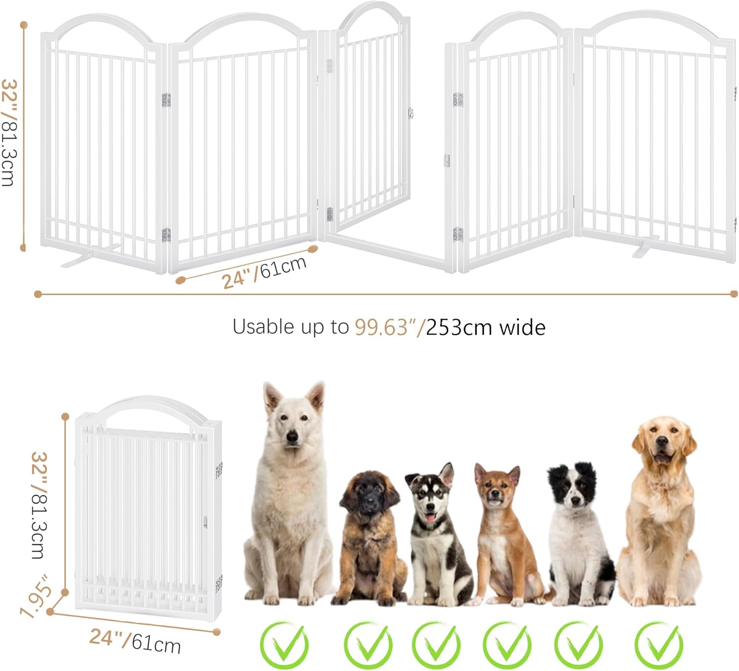 BHG Metal No-Assembly Freestanding Dog Gate with Door Walk Through, Extra Wide 120", Extra Tall 32" Pet Gate, Accordion Puppy Folding Playpen Dog Fence, with 2PCS Support (White, 5 Panels)