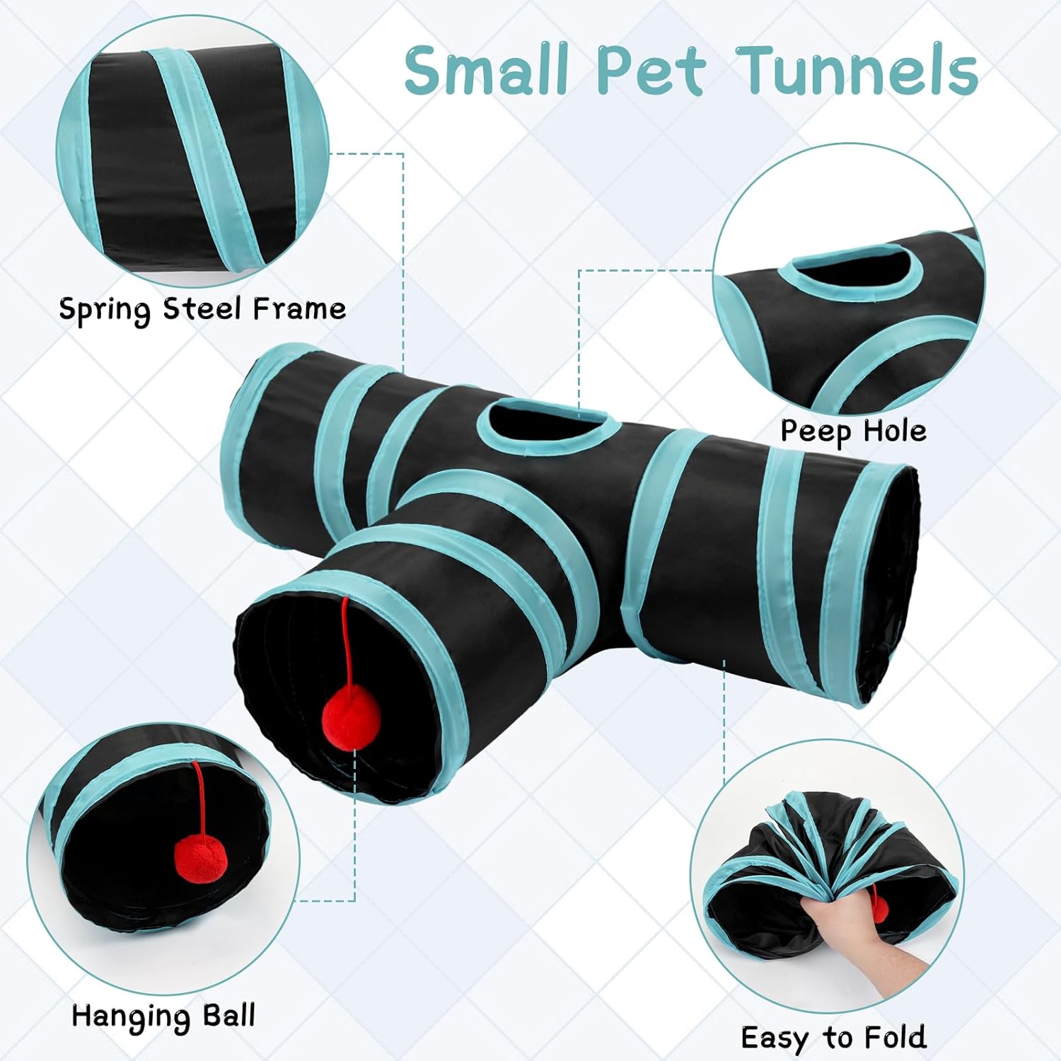 - 3 Way Play Tunnel: The hamster tunnel with 3 tubes, peephole and play ball is a great little place for your pet to hide, play and sleep, providing them with exercise and play space, bringing more fun to your pet